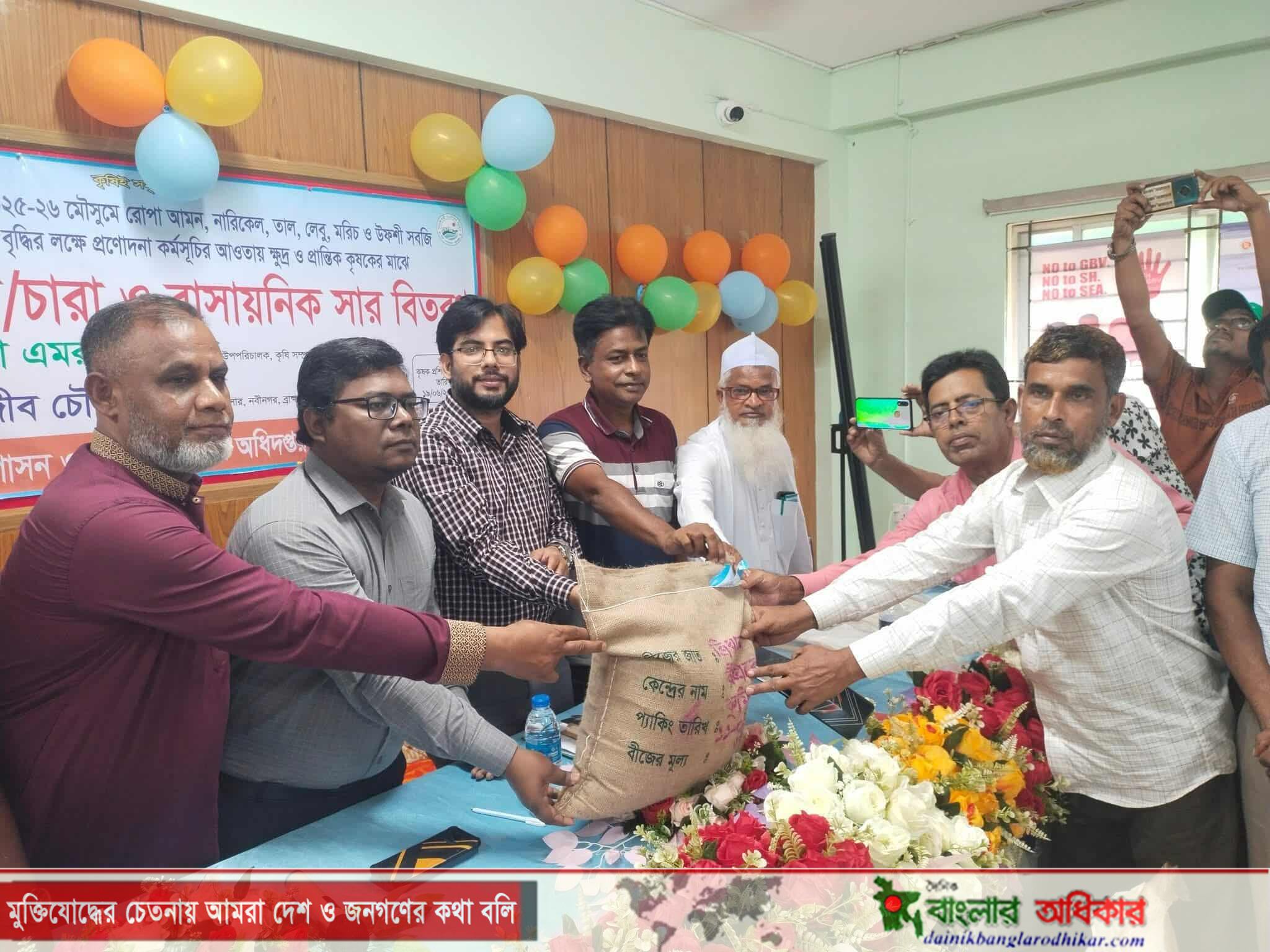নবীনগরে কৃষকের মাঝে বিনামূল্যে বীজ, চারা ও সার বিতরণ