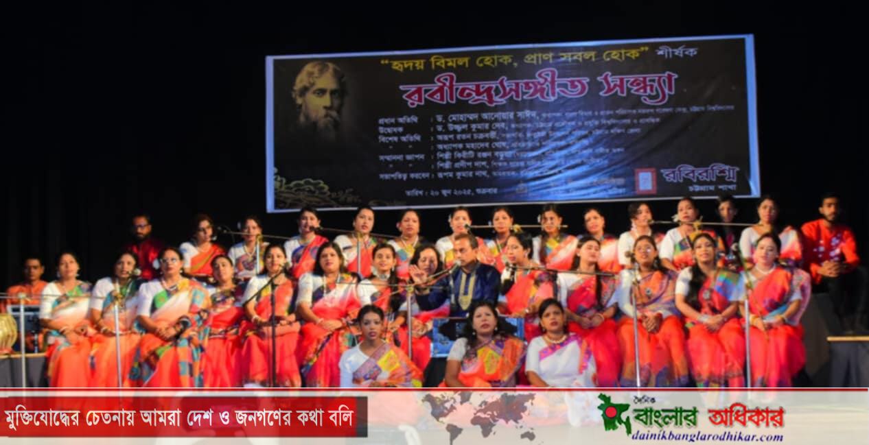 রবীন্দ্র সংগীত চর্চার ধারাবাহিকতায় ও শিল্প-সাহিত্যের প্রতি ভালোবাসার বহিঃপ্রকাশ ঘটিয়ে “রবিরশ্মি” চট্টগ্রাম শাখার উদ্যোগে গত ২০শে জুন শুক্রবার বিকাল ৫:০০টায় চট্টগ্রাম থিয়েটার ইন্সটিটিউট মিলনায়তনে অনুষ্ঠিত রবীন্দ্র সংগীত সন্ধ্যায় “হৃদয় বিমল হোক, প্রাণ সবল হোক” এই শিরোনামে আয়োজিত অনুষ্ঠানে বক্তারা একথা বলেন।