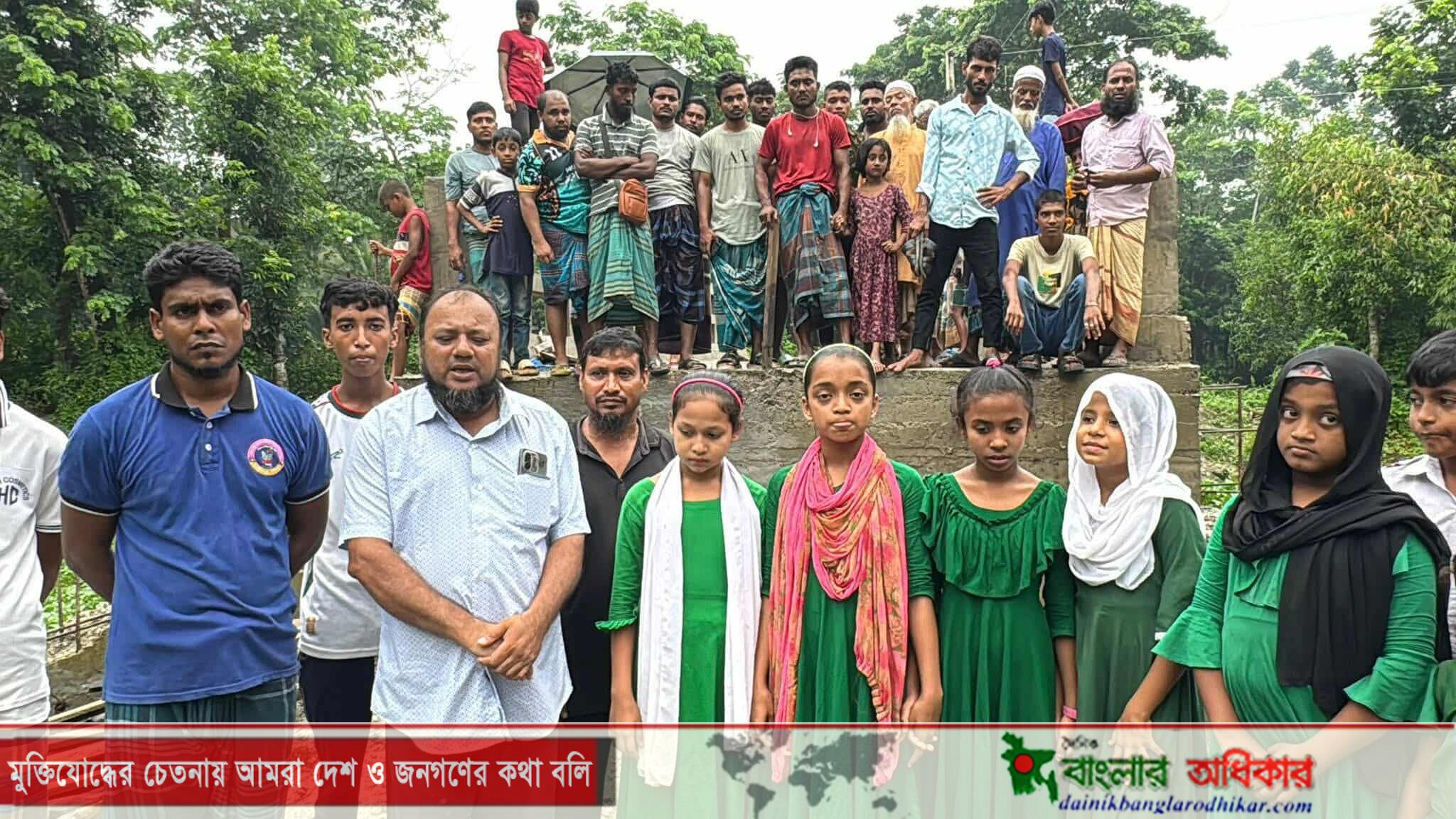 মতলব দক্ষিণে ব্রীজের এপ্রোচ মাটি ভরাট না করায় জনদুর্ভোগ, এলাকাবাসীর বিক্ষোভ ও মানববন্ধন