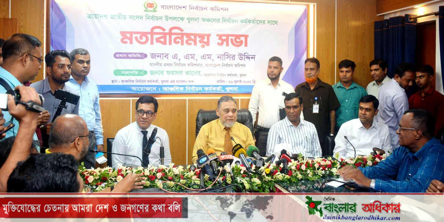 প্রধান নির্বাচন কমিশনার আজ (শনিবার) সকালে খুলনা আঞ্চলিক নির্বাচন কর্মকর্তার সম্মেলনকক্ষে ত্রয়োদশ জাতীয় সংসদ নির্বাচন উপলক্ষ্যে খুলনা অঞ্চলের নির্বাচন কর্মকর্তাদের সাথে মতবিনিময় সভার আগে গণমাধ্যমকর্মীদের ব্রিফকালে একথা বলেন।