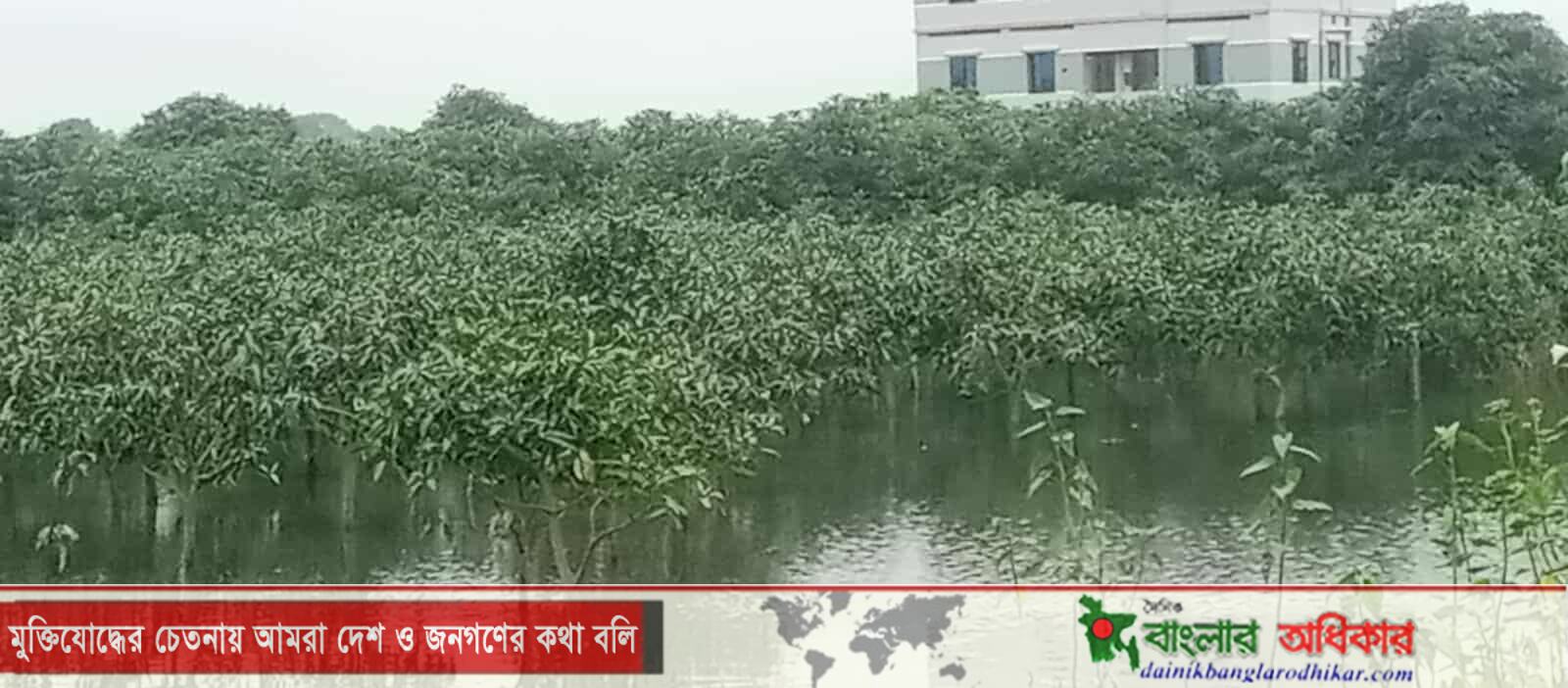পানি নিষ্কাশন হতো। কিন্তু সিএন্ডবির জায়গা ভরাট করে পরিকল্পিত ভাবে আড়তঘর নির্মাণ করায় পানি নিষ্কাশনের পথ বন্ধ হয়ে গেছে। এতে ওই মাঠের প্রায় ১০০ বিঘা জমির আমগাছ বর্ষার পানিতে প্লাবিত হয়ে আছে। ফলে চলতি মৌসুমে আম বাগান মালিককগণ বাগানের পরিচর্যা করতে পারছেনা। এলাকাবাসী তদন্ত সাপেক্ষে সড়কের পাশের নালা দখল মুক্ত করে পুনরায় পানি নিষ্কাশন ব্যবস্থা চালু করতে সংশ্লিষ্ট প্রশাসনের জরুরী হস্তক্ষেপ কামনা করেছেন।