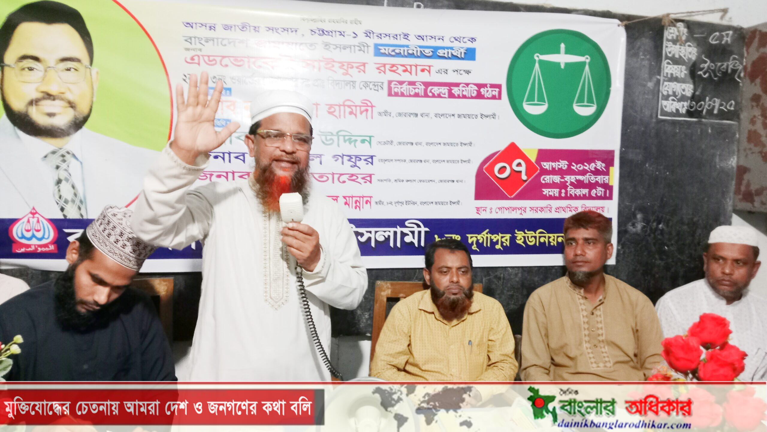 আসন্ন ত্রয়োদশ জাতীয় সংসদ নির্বাচনে চট্টগ্রাম-১ (মিরসরাই) আসনে জামায়াতে ইসলামীর মনোনীত প্রার্থী ডেপুটি অ্যাটর্নি জেনারেল অ্যাডভোকেট সাইফুর রহমান।উপজেলার জোরারগঞ্জ থানার অন্তর্গত ৮ নং দূর্গাপুর ইউনিয়নের ২ ও ৩ নং ওয়ার্ডের নির্বাচনী কেন্দ্র কমিটি গঠন ইতিমধ্যে সম্পন্ন হয়।৭ আগস্ট বৃহস্পতিবার বিকালে গোপালপুর সরকারী প্রথামিক বিদ্যালয়ে নির্বাচনী কেন্দ্র কমিটি গঠন করা হয়।প্রধান অতিথি হিসাবে উপস্থিত ছিলেন, জোরারগঞ্জ থানা আমীর মাওলানা নরুল হুদা হামিদী ,বিশেষ অতিথি হিসাবে উপস্থিত ছিলেন জোরারগঞ্জ থানা সেক্রেটারী জনাব মাইন উদ্দিন, থানা অর্থ সম্পাদক