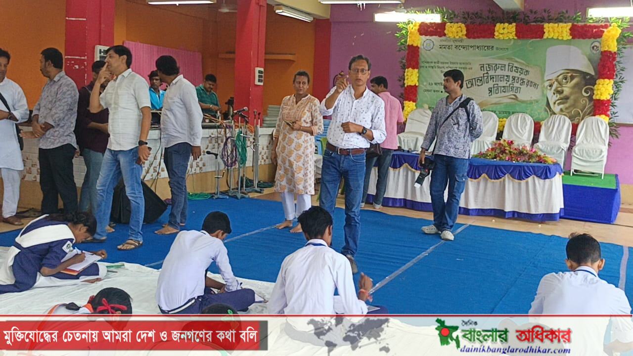 বাইজিদ মন্ডল ডায়মন্ড হারবার:-* প্রতি বছরের মতো এবারও ডায়মন্ড হারবার পৌরসভার সহযোগিতায় ও ডায়মন্ড হারবার মহকুমা তথ্য ও সংস্কৃতি দপ্তরের উদ্যোগে,পশ্চিম বঙ্গ কাজী নজরুল ইসলাম আকাডেমি তথ্য ও সংস্কৃতি বিভাগ,পশ্চিম বঙ্গ সরকারের নিবেদন নজরুল বিষয়ক আন্তর্বিদ্যালয় প্রবন্ধ রচনা প্রতিযোগিতার আয়োজন করে ডায়মন্ড হারবার পৌরসভার মেঘনা ভবনে। এখানে ডায়মন্ড হারবারে বিভিন্ন এলাকা থেকে ১৫ টি স্কুলের প্রায় ৮০জন ছাত্র ছাত্রী এই প্রতিযোগিতায় অংশগ্রহণ করে। এদিনের প্রতিযোগীর শিরোনাম ছিল নজরুল কে কেনো আমাদের ভালো লাগে,সেই বিষয়ে লেখার জন্য সময় দেওয়া হয়েছিল এক ঘন্টা। এখানে পরিদর্শনে উপস্থিত ছিলেন ডায়মন্ড হারবার মহকুমা তথ্য ও সংস্কৃতি দপ্তরের আধিকারিক ব্রতী বিশ্বাস (দত্ত), ডা: হা: বিধানসভার বিধায়ক পান্নালাল হালদার,পৌরসভার চেয়ারম্যান প্রণব দাস, ভাইস চেয়ারম্যান রাজশ্রী দাস, কার্য্য নির্বাহী আধিকারিক,এছাড়াও বিচারক হিসেবে উপস্থিত ছিলেন,কুলতলি ড: বি আর আম্বেদকর কলেজের সহকারী অধ্যাপক রুপম প্রামানিক,সোনামুখী জনকল্যাণ বিদ্যাপীঠ এর শিক্ষক ওয়াসিম রাজা,সঞ্চালনায় শিক্ষিকা মিতা কাঞ্জি সহ শিক্ষক শিক্ষিকা,আরো অন্যান্য আধিকারিক ও তথ্য ও সংস্কৃতি দপ্তরের কর্মকর্তা প্রমুখ। নজরুলকে কেনো আমাদের ভালো লাগে সেই বিষয়ের উপর ভালো লেখার জন্য সেই সব ছাত্র ছাত্রীদের সার্টিফিকেট ও পুরস্কৃত করে তাদের কে সম্মাননা প্রদান করা হয়। অধ্যাপক রূপম প্রামাণিক তিনি বলেন কাজী নজরুল ইসলামের লেখায় ধর্ম-বর্ণ নির্বিশেষে সাম্য ও মানবতার জয়গান করা হয়েছে,যা মানুষকে অনুপ্রাণিত করে। তাঁর সাহিত্যকর্ম বাংলা ভাষাকে সমৃদ্ধ করেছে এবং তার শক্তিশালী ও মনমুগ্ধকর লেখনী পাঠককে আকর্ষণ করে। তিনি দেশপ্রেমী হিসেবে পরিচিত এবং ব্রিটিশ শাসনের বিরুদ্ধে সোচ্চার ছিলেন। তিনি সমাজের পিছিয়ে পড়া ও শোষিত মানুষের পক্ষে কথা বলতেন এবং তাদের অধিকারের জন্য লড়াই করতেন। অসাম্প্রদায়িক মনোভাব