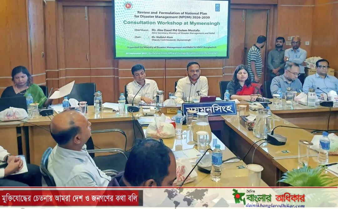 ময়মনসিংহে জাতীয় দুর্যোগ ব্যবস্থাপনায় পরিকল্পনা প্রণয়ন সংক্রান্ত পরামর্শক এক কর্মশালা অনুষ্ঠিত হয়েছে।