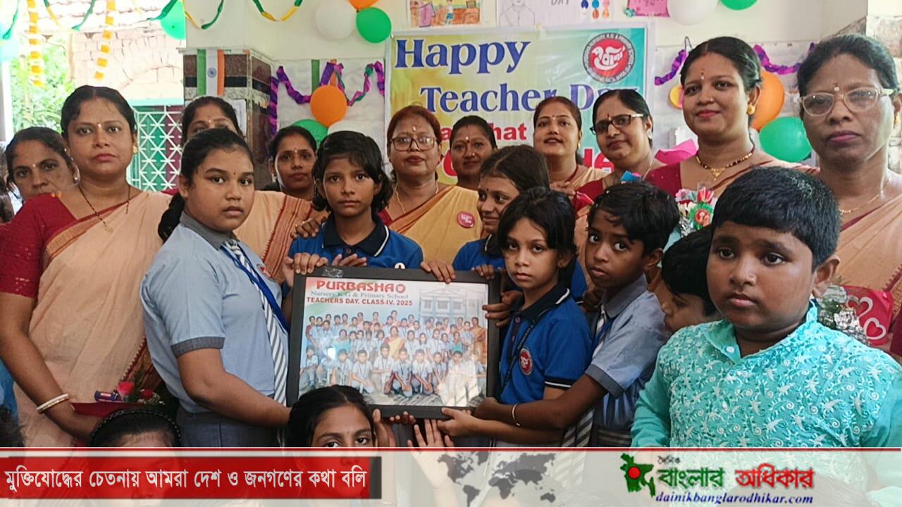 *বাইজিদ মন্ডল ডায়মন্ড হারবার* ভারতে প্রতি বছর ৫ সেপ্টেম্বর ডঃ সর্বপল্লী রাধাকৃষ্ণণ, ভারতের দ্বিতীয় রাষ্ট্রপতি ও এক মহান শিক্ষক, তার জন্মদিনে শিক্ষক দিবস হিসেবে পালন করা হয়। সারা রাজ্যের পাশাপাশি দক্ষিন চব্বিশ পরগনা জেলায় ফলতা সহরারহাট পূর্বাশা নার্সারী কেজি ও প্রাইমারি স্কুলে শিক্ষক দিবস উপলক্ষে উক্ত স্কুলের চতুর্থ শ্রেণীর শিক্ষার্থীদের অভিভাবকরা সকল শিক্ষক শিক্ষিকাদের সম্মাননা জানাতে জাঁক জমক ভাবে বিভিন্ন অনুষ্ঠানের আয়োজন করে।এদিন পূর্বাশা নার্সারী কেজি ও প্রাইমারি স্কুলে শিক্ষার্থীদের অভিভাবকরা শ্রেণীকক্ষ ,ব্যানার ও বেলুন দিয়ে সাজানো হয়,যেখানে শিক্ষার্থীরা তাদের শিক্ষককে ধন্যবাদ জানাতে তাদের হাতে ছোট ছোট উপহার তুলে দেয়,এবং নিত্য, বক্তৃতা ও গান বা কবিতার মাধ্যমে তাদের প্রতি কৃতজ্ঞতা প্রকাশ করা হয়।শিক্ষক দিবসের তাৎপর্য তুলে ধরে শিক্ষক বা শিক্ষার্থীদের পক্ষ থেকে ছোট ছোট বক্তৃতা দেওয়া হয়। যেখানে শিক্ষকদের প্রতি তাদের অবদান এবং শ্রদ্ধার কথা বলা হয়।শিক্ষক দিবসের মূল উদ্দেশ্য হলো শিক্ষকদের কঠোর পরিশ্রম, ধৈর্য এবং প্রজ্ঞার জন্য তাদের প্রতি কৃতজ্ঞতা প্রকাশ করা। পূর্বাশা নার্সারী কেজি ও প্রাইমারি স্কুলের প্রধান শিক্ষিকা অমিতা হালদার তিনি জানান,এই দিনটি শিক্ষকদের প্রতি শ্রদ্ধা ও সম্মান প্রদর্শনের একটি বিশেষ উপলক্ষ, যা তরুণ মনকে পথপ্রদর্শন ও অনুপ্রাণিত করার ক্ষেত্রে তাদের গুরুত্বপূর্ণ ভূমিকার প্রতি সম্মান জানানো। মজাদার কার্যকলাপের মাধ্যমে দিনটিকে আরও আনন্দদায়ক ও স্মরণীয় করে তোলা হয়, যা শিক্ষক ও শিক্ষার্থী উভয়ের জন্যই আনন্দদায়ক হয়ে ওঠে।