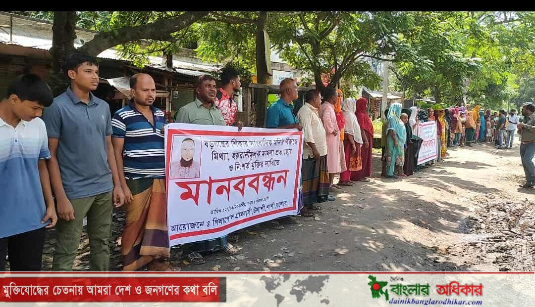 সাংবাদিকের বিরুদ্ধে মিথ্যা মামলা প্রত্যাহার ও মুক্তির দাবিতে মানববন্ধন