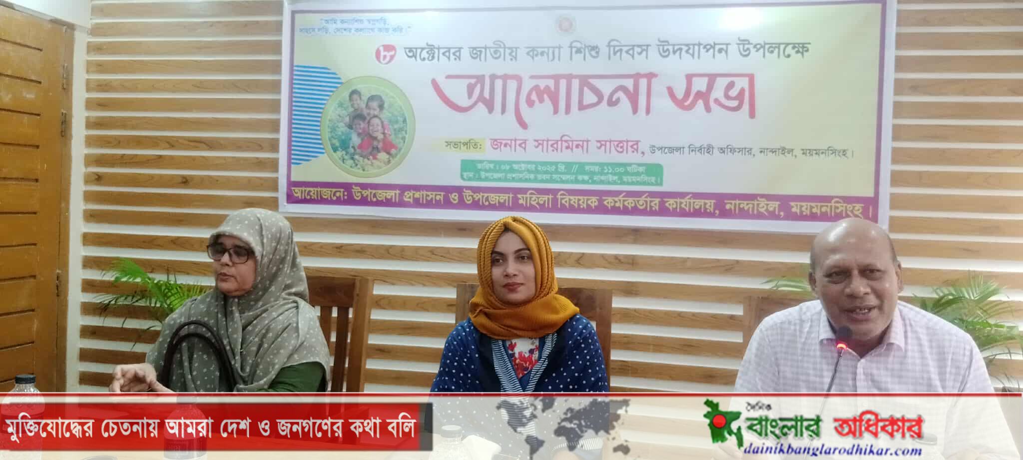 “আমি কন্যাশিশু স্বপ্ন গড়ি, সাহসে লড়ি, দেশের কল্যাণে কাজ করি”এই প্রতিপাদ্যকে সামনে রেখে ময়মনসিংহের নান্দাইলে জাতীয় কন্যা শিশু দিবস-২০২৫ উদযাপন করা হয়েছে।