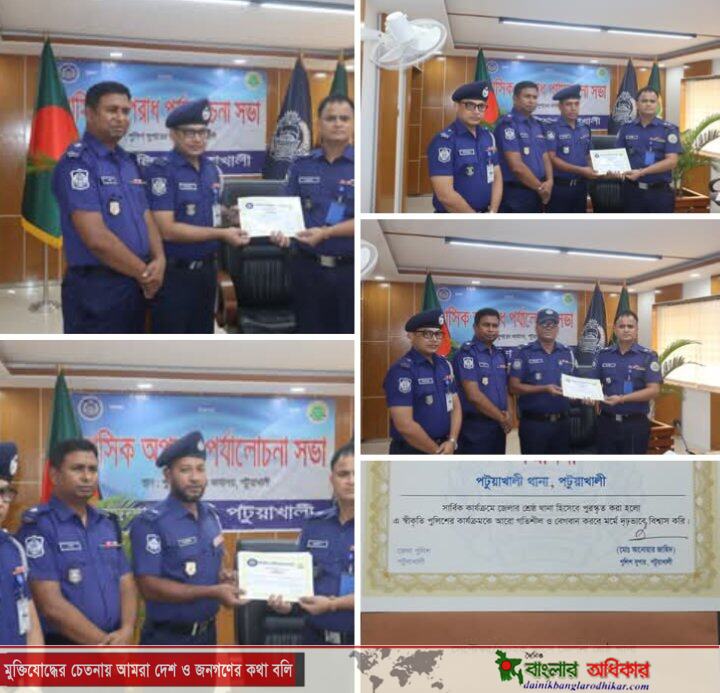অপরাধ পর্যালোচনা সভায় (সেপ্টেম্বর /২০২৫) শ্রেষ্ঠ থানার পুরস্কার অর্জন করেছে পটুয়াখালী সদর থানা।