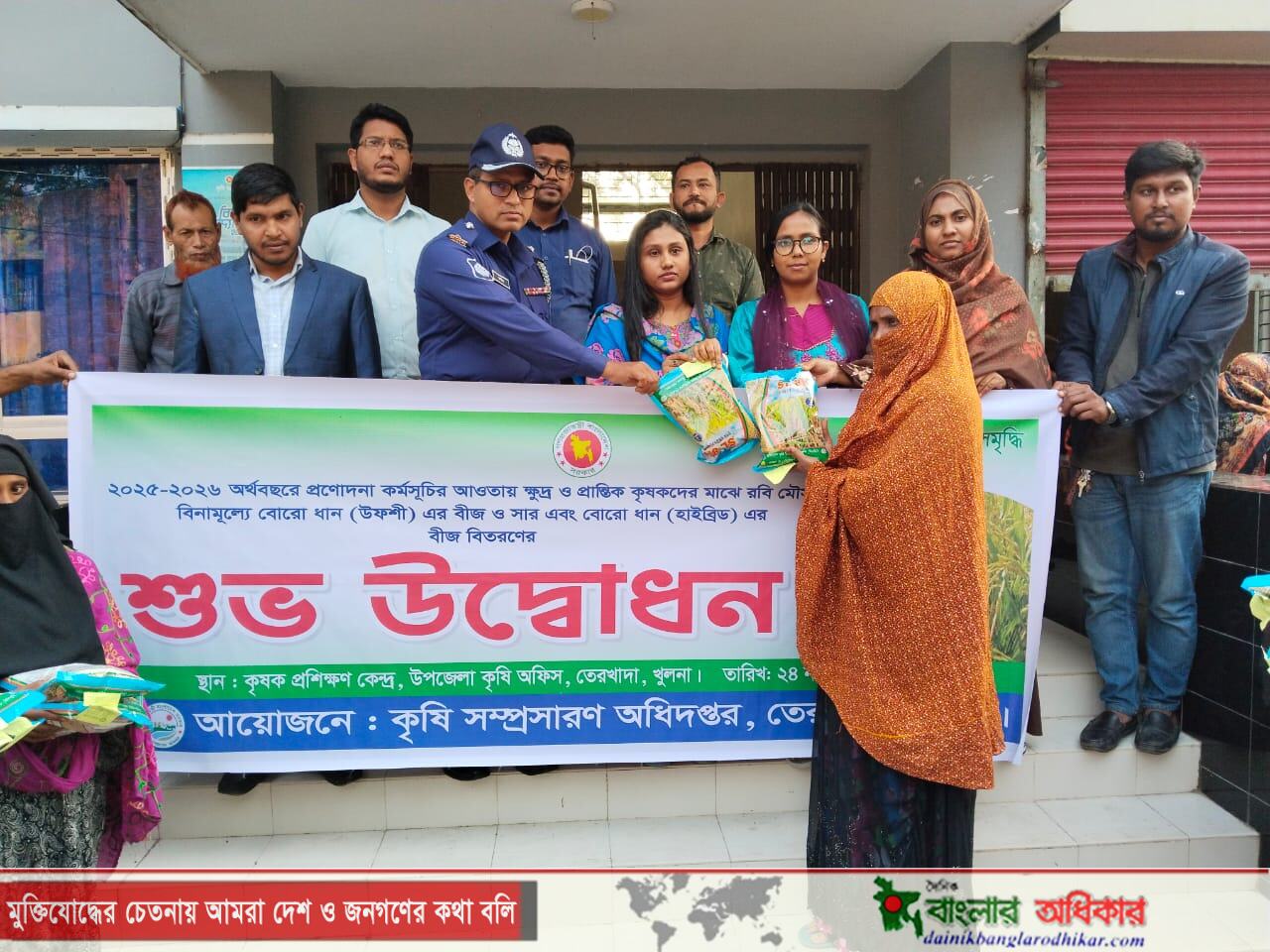 উপজেলা কৃষি সম্প্রসারণ অধিদপ্তর তেরখাদা এর আয়োজনে ২০২৫-২৬ অর্থ বছরে প্রণোদনা কর্মসূচির আওতায় ক্ষুদ্র ও প্রান্তিক কৃষকদের মাঝে রবি মৌসুমে বিনামূল্যে বোরো ধান (উফশী) এর বীজ ও সার এবং বোরো ধান (হাইব্রিড) বীজ বিতরণের উদ্বোধন গত ২৪ নভেম্বর সকাল সাড়ে ১১টার দিকে উপজলা কৃষি অফিসের কৃষক প্রশিক্ষণ কেন্দ্রে অনুষ্ঠিত হয়।
