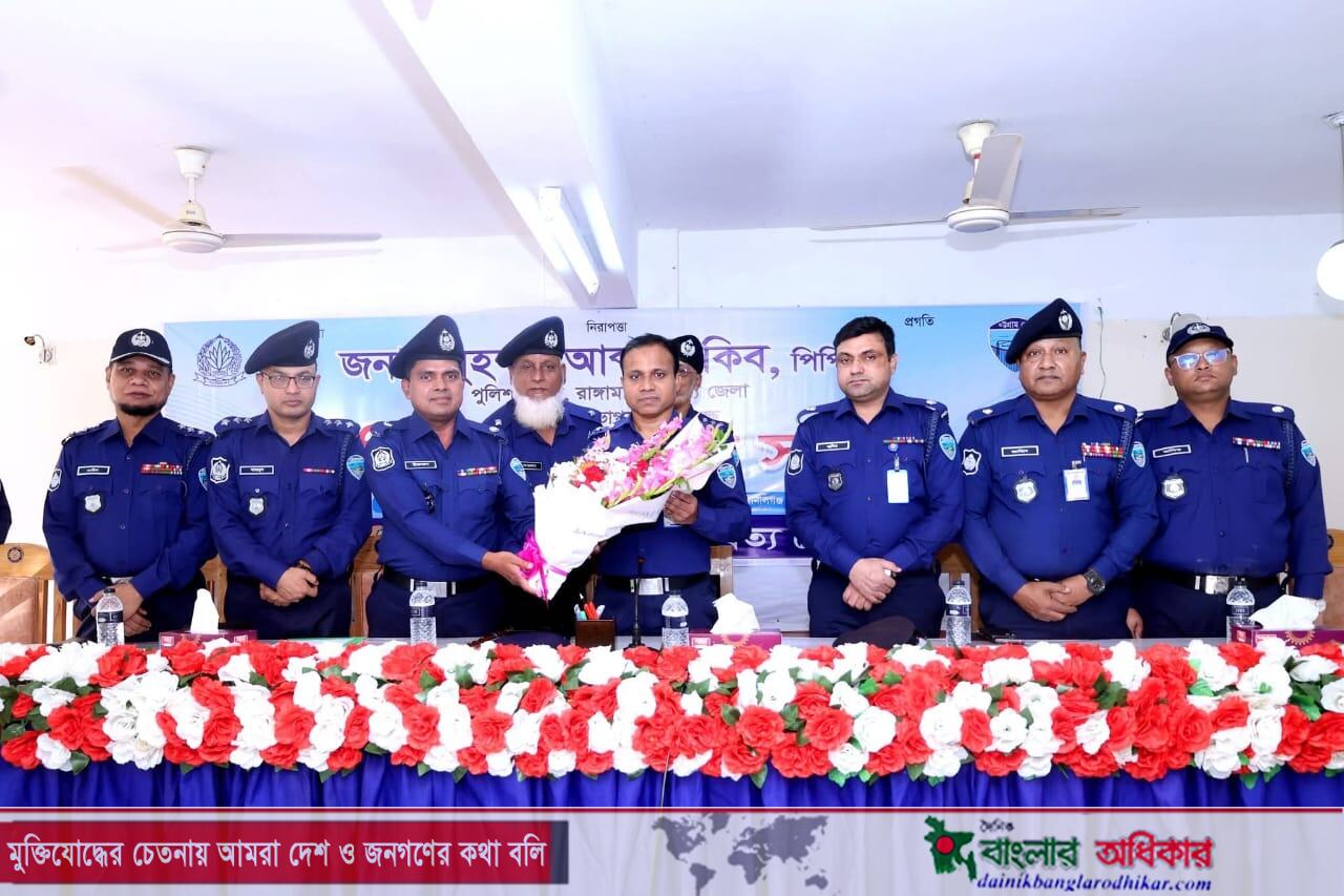 নবাগত পুলিশ সুপার মহোদয় পুলিশ লাইন্সে পৌঁছালে রাঙ্গামাটি জেলা পুলিশের পক্ষ থেকে তাঁকে ফুলেল শুভেচ্ছা জানানো হয়। পরে জেলা পুলিশের অফিসার ও ফোর্সগণ তাঁদের বক্তব্যে পুলিশ সুপার মহোদয়কে রাঙ্গামাটির আইনশৃঙ্খলা পরিস্থিতি আরও সুদৃঢ়, টেকসই ও জনবান্ধব করার অঙ্গীকার ব্যক্ত করেন।