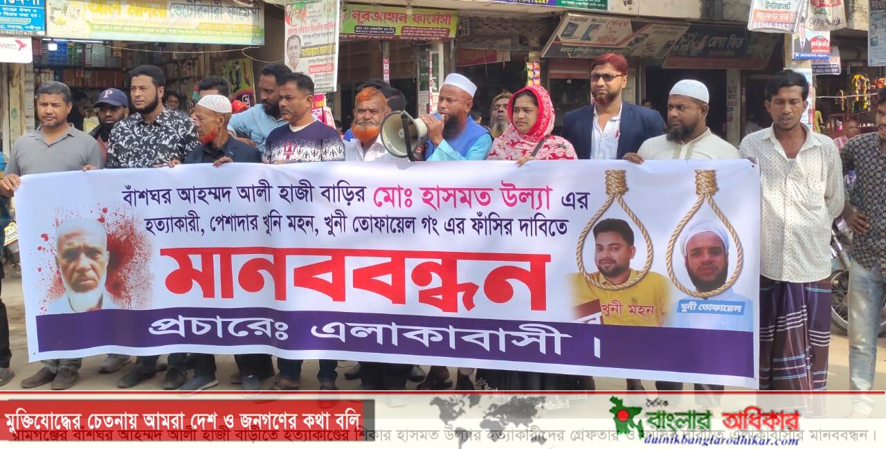 রামগঞ্জে চাচা হত্যাকারীদের গ্রেপ্তার ও ফাঁসির দাবিতে মানববন্ধন অনুষ্ঠিত