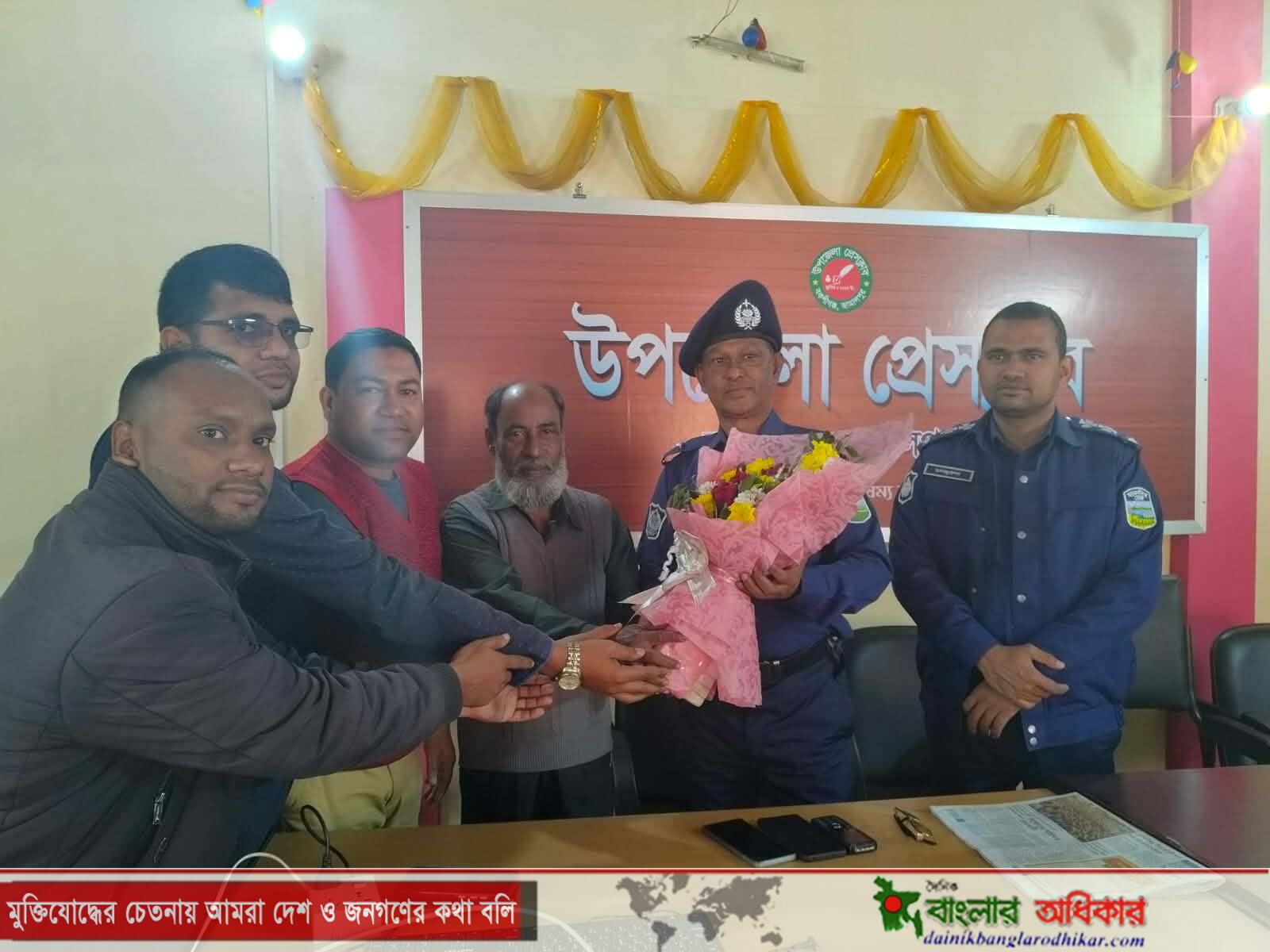 শুভেচ্ছা প্রদানকালে উপস্থিত ছিলেন উপজেলা প্রেসক্লাবের সিনিয়র সহসভাপতি ও দৈনিক দিনকাল প্রতিনিধি জিএম সাফিনুর ইসলাম মেজর, সাধারণ সম্পাদক ও আরটিভি প্রতিনিধি জিএম ফাতিউল হাফিজ বাবু, কোষাধ্যক্ষ ও দৈনিক আমার দেশ প্রতিনিধি রকিবুল হাসান বিদ্রোহী, তথ্য ও গবেষণা বিষয়ক সম্পাদক ও দৈনিক আমার সংবাদ এর প্রতিনিধি শাহজাহান পারভেজ শাহীন, উপজেলা প্রেসক্লাবের সদস্য ও এশিয়ান টিভির প্রতিনিধি গাজী মোস্তফা ও উপজেলা প্রেসক্লাবের সদস্য ও দৈনিক আমাদের বাংলার প্রতিনিধি রাসেল রানা।