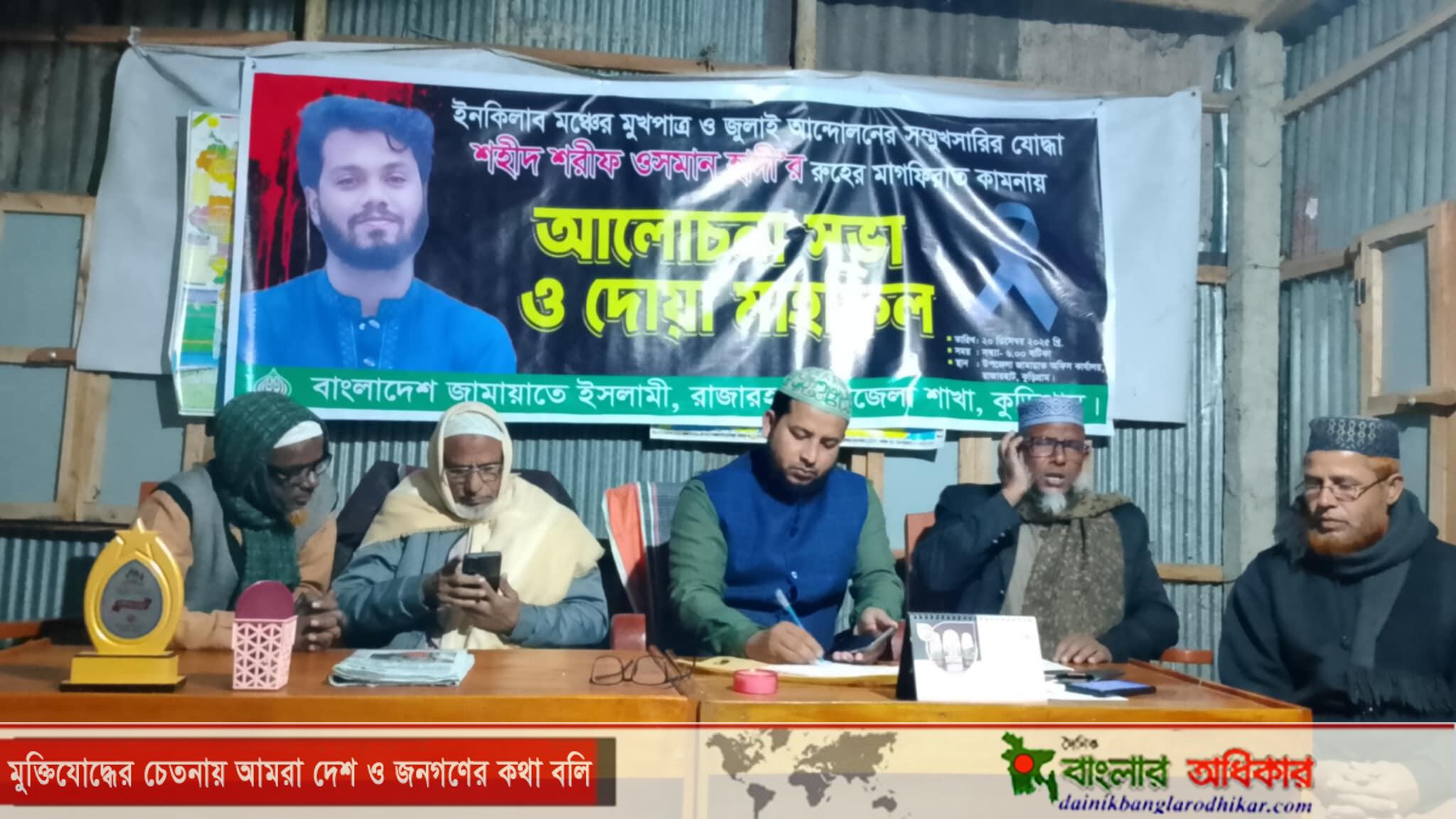 ইনকিলাব মঞ্চের মুখপাত্র ও জুলাই আন্দোলনের সম্মুখসারীর অন্যতম নেতা শহীদ শরীফ ওসমান হাদীর রুহের মাগফিরাত কামনায় রাজারহাটে আলোচনা সভা ও দোয়া মাহফিল অনুষ্ঠিত হয়েছে। শনিবার বাদ মাগরিব রাজারহাট উপজেলা জামায়াতের কার্যালয়ে এ কর্মসূচির আয়োজন করা হয়।