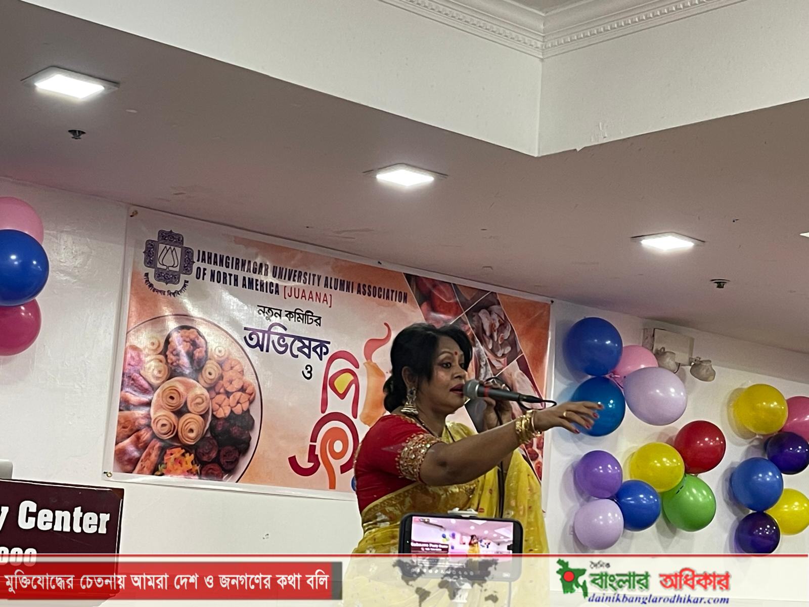 জাহাঙ্গীরনগর বিশ্ববিদ্যালয় অ্যালামনাই অ্যাসোসিয়েশন অফ নর্থ আমেরিকা (জুয়ানা)-এর নবনির্বাচিত কমিটির অভিষেক অনুষ্ঠান ও ঐতিহ্যবাহী পিঠা উৎসব গত শনিবার নিউইয়র্কের একটি রেস্টুরেন্টে আনন্দঘন পরিবেশে অনুষ্ঠিত হয়েছে। বিকাল থেকে রাত পর্যন্ত চলা এ অনুষ্ঠানে নর্থ আমেরিকায় বসবাসরত জাহাঙ্গীরনগর বিশ্ববিদ্যালয়ের বিভিন্ন ব্যাচের প্রাক্তন শিক্ষার্থী, তাঁদের পরিবার-পরিজন ও স্বজনরা অংশগ্রহণ করেন।খবর আইবিএননিউজ।