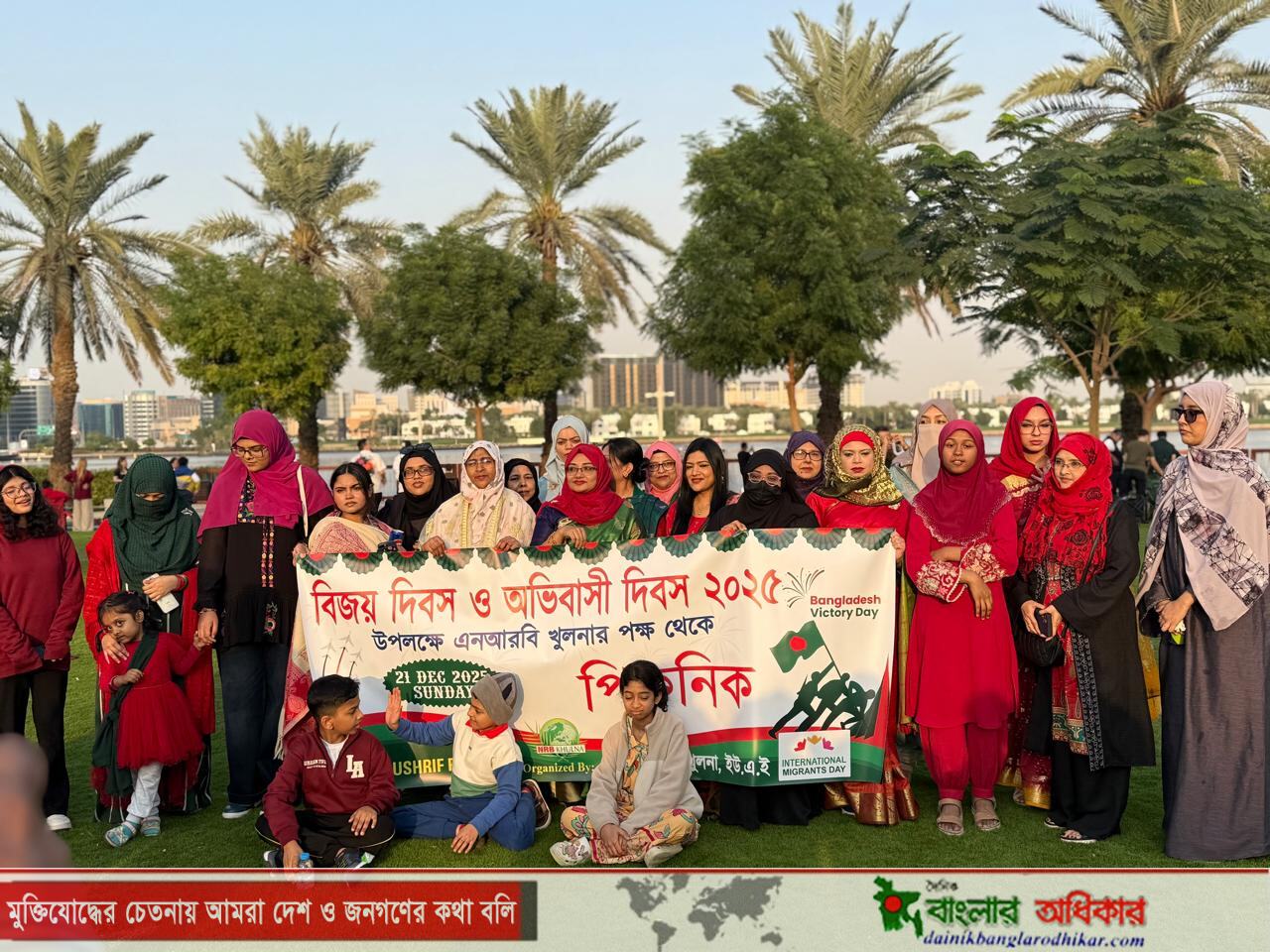 দুবাইয়ের প্রাণকেন্দ্র ক্রিক পার্কে মহান বিজয় দিবস ও আন্তর্জাতিক অভিবাসী দিবস ২০২৫ উদযাপিত হয়েছে। গত রবিবার (২১ ডিসেম্বর) প্রবাসী সংগঠন ‘এনআরবি খুলনা’-র আয়োজনে আয়োজিত এই দিনব্যাপী অনুষ্ঠানে আমিরাতের সাতটি প্রদেশ থেকে বৃহত্তর খুলনা অঞ্চলের পেশাজীবী অভিবাসীরা তাদের পরিবার-পরিজন নিয়ে একত্রিত হন। দিনব্যাপী এ অনুষ্ঠানে দেশীয় খেলাধুলা, রান্নাবান্না, শিশু-কিশোরদের চিত্রাঙ্কন এবং দেশাত্মবোধ ও সাংস্কৃতিক বন্ধনের অনুভূতি জাগিয়ে তোলে।