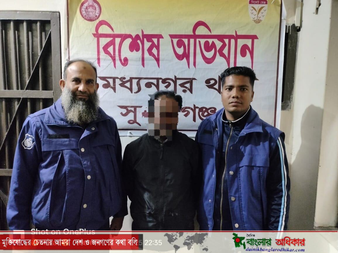 সুনামগঞ্জের নবগঠিত মধ্যনগর উপজেলা যুবলীগের সাংগঠনিক সম্পাদক মোঃ সাখাওয়াত হোসেনকে বৃহস্পতিবার ডেবিল হান্ট যৌথ অভিযান চালিয়ে নেত্রকোনা মুক্তার পাড়া এলাকা থেকে গ্রেপ্তার করেছে ডিবি পুলিশ।