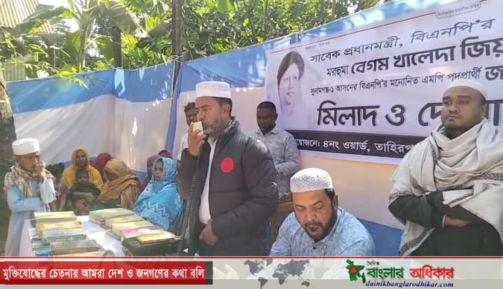 সাবেক প্রধানমন্ত্রী বিএনপির চেয়ারপার্সন দেশনেত্রী মরহুমা বেগম খালেদাজিয়ার রুহের আত্মার মাগফেরাত কামনায় সুনামগঞ্জ-১ আসনের অধীনস্থ তাহিরপুর উপজেলার তাহিরপুর সদর ইউনিয়নের ৪নং ওয়ার্ড মহিলা নেতৃবৃন্দের উদ্যোগে দোয়া এবং মিলাদ মাহফিল অনুষ্ঠিত হয়।