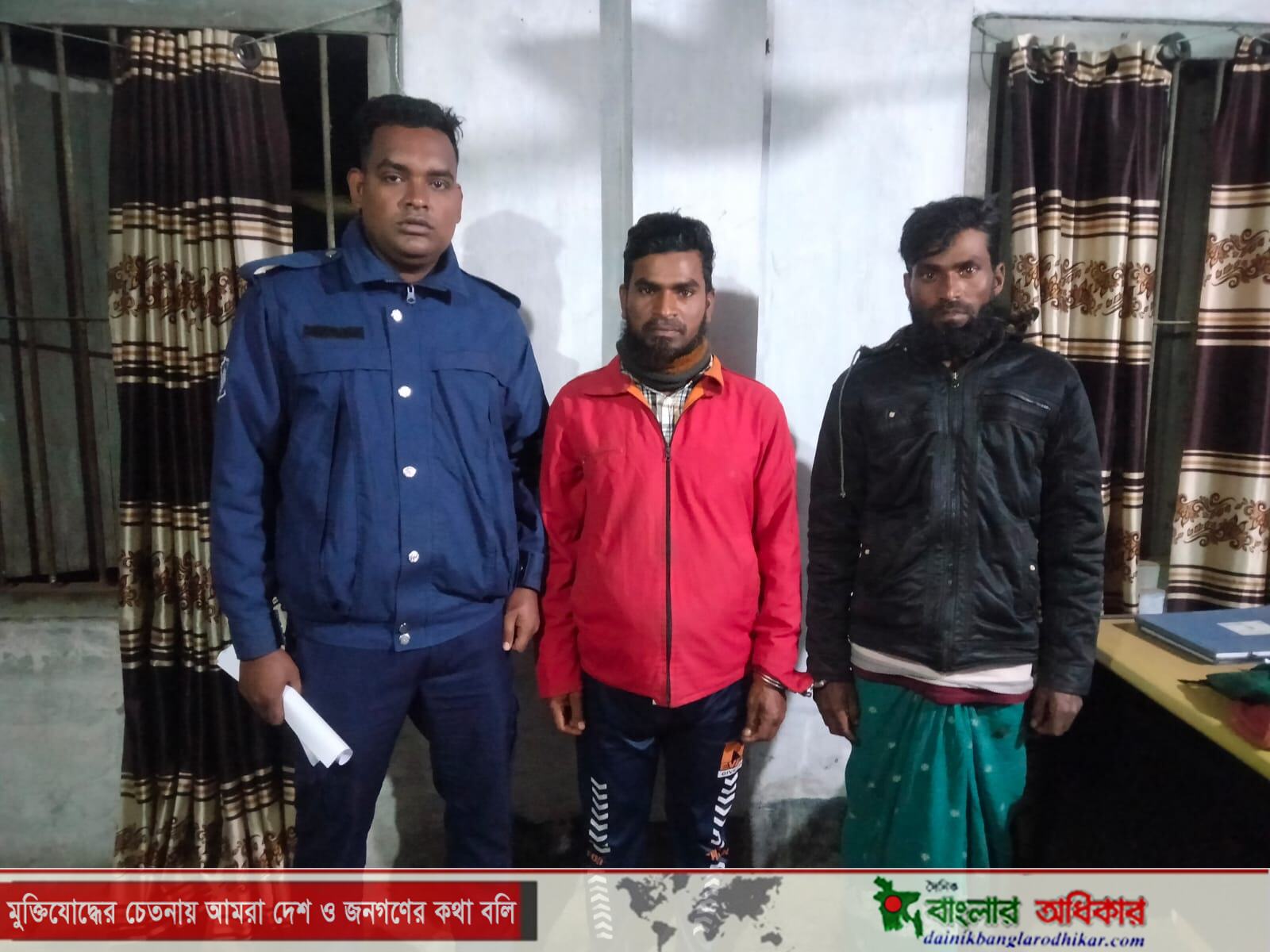 হরিনা নৌ পুলিশের অভুযানে মেঘনা নদী থেকে অবৈধ জাল দিয়ে মাছ শিকারের দায়ে ২ জেলে আটক