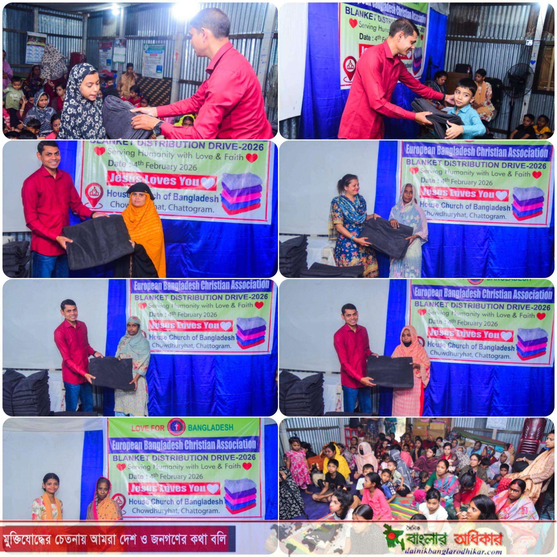 চট্টগ্রামের চৌধুরীহাট এলাকায় অবস্থিত “হাউজ চার্চ বাংলাদেশ”- প্রাঙ্গণে শীতার্ত গরিব ও অসহায় মানুষের মাঝে কম্বল বিতরণ করেছে “ইউরোপিয়ান বাংলাদেশ খ্রিস্টান এসোসিয়েশন।”