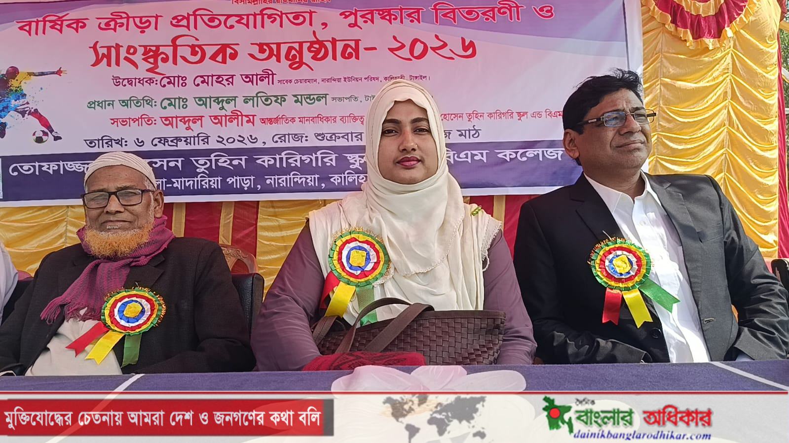 টাঙ্গাইলের কালিহাতী উপজেলার তোফাজ্জল হোসেন তুহিন কারিগরি স্কুল এন্ড বিএম কলেজের বার্ষিক ক্রীড়া প্রতিযোগিতা,পুরস্কার বিতরণী ও সাংস্কৃতিক অনুষ্ঠান অনুষ্ঠিত হয়েছে। ৬ ফেব্রুয়ারী প্রতিষ্ঠানটির পরিচালনা কমিটির সভাপতি, আন্তর্জাতিক মানবাধিকার ব্যক্তিত্ব আব্দুল আলীমের সভাপতিত্বে প্রধান অতিথি হিসেবে উপস্থিত ছিলেন বাংলাদেশ কলেজ শিক্ষক সমিতি- বাকশিসের কেন্দ্রীয় নির্বাহী কমিটির নেতা ও টাইম গ্রুপের সভাপতি অধ্যাপক আব্দুল লতিফ মন্ডল। অনুষ্ঠানের উদ্বোধক ছিলেন নারান্দিয়া ইউনিয়নের সাবেক চেয়ারম্যান ও কালিহাতী উপজেলা বিএনপির সাবেক যুগ্ম সাধারণ সম্পাদক মোঃ মোহর আলী।