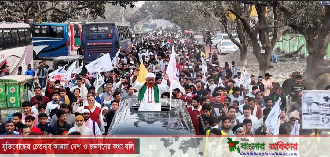 চাঁপাইনবাবগঞ্জ-৩ আসনে (সদর) বাংলাদেশ জামায়াতে ইসলামী মনোনীত দাঁড়িপাল্লা প্রতীকের মোঃ নূরুল ইসলাম বুলবুলের সমর্থনে বিশাল গণমিছিল বের করা হয়। বাংলাদেশ জামায়াতে ইসলামী, চাঁপাইনবাবগঞ্জ জেলা শাখা আয়োজিত জামায়াত ইসলামী সমর্থিত হাজার হাজার নেতাকর্মীর অংশগ্রহণে গতকাল রোববার বিকেলে জেলা শহরের বড় ইন্দারা মোড়ে থেকে বের হয়ে বাতেন খাঁ মোড় হয়ে বিশ^রোড মোড় হয়ে নবাবগঞ্জ সরকারি কলেজের সামনে গিয়ে সমাবেশ অনুষ্ঠিত হয়। সমাবেশে দাঁড়িপাল্লা প্রতীকের মোঃ নূরুল ইসলাম বুলবুল তার বক্তব্যে বলেন, ন্যায় ও ইনসাফের বাংলাদেশ গড়তে দাঁড়িপাল্লাকে বিজয়ী করতে হবে। মানবিক চাঁপাইনবাবগঞ্জ গড়ার জন্য জনতা আজ ঐক্যবদ্ধ হয়েছে। রাতের হুতুম পেঁচাদের কাছ থেকে সতর্ক থাকতে হবে। কোন ভোট ডাকাতির জনতা তার দাঁত ভাঙ্গা জবাব দিবে। তিনি আরও বলেন, শাড়ি-লুঙ্গি, মুরগির বিনিময়ে ভোট বিক্রি করা যাবে না। দাঁড়িপাল্লা সব ধর্ম ও শ্রেণি-পেশার মানুষের আস্থা আর ভরসার প্রতীক। বর্তমানে সবচেয়ে জনপ্রিয় প্রতীক হলো দাঁড়িপাল্লা, যার কোনো বিকল্প নেই। সব ধর্মের মা-বোনেরা স্বাভাবিকভাবে চলাফেরা করতে পারবেন। কেউ বাধা দেবে না। বরং জামায়াত ক্ষমতায় গেলে সব ধর্মের মানুষ তার অধিকার ফিরে পাবে, এগুলো আপনাদের নাগরিক অধিকার। নূরুল ইসলাম বুলবুল বলেন, চাঁপাইনবাবগঞ্জের উন্নয়নে দাঁড়িপাল্লা একমাত্র ভরসার নাম। দাঁড়িপাল্লা প্রতীক নির্বাচিত হলে মানুষ আর বৈষম্যের শিকার হবে না। উন্নয়নের প্রতীক দাঁড়িপাল্লা। সারাদেশে দাঁড়িপাল্লার এক গণজোয়ার সৃষ্টি হয়েছে। জামায়াতে ইসলামী ক্ষমতায় আসলে সুশাসনের সমাজ গঠন করা হবে, নির্বাচনে জামায়াত দেশ পরিচালনার দায়িত্ব পেলে দলের অনতুন মানবিক ও বৈষম্যমুক্ত বাংলাদেশ গঠন করা হবে। চাঁপাইনবাবগঞ্জের যেগুলো সমস্যা রয়েছে, তা সর্বাগ্রে কাজগুলো হবে। সমাবেশে অন্যদের মধ্যে বক্তব্য রাখেন, জামায়াতে ইসলামী কেন্দ্রীয় কমিটির কর্মপরিষদ সদস্য ও চাঁপাইনবাবগঞ্জ পৌরসভার সাবেক মেয়র মোহাম্মদ নজরুল ইসলাম, জেলা জামায়াতের নায়েবে আমীর ও সদর উপজেলার সাবেক চেয়ারম্যান অধ্যাপক মোঃ মোখেলেসুর রহমান জেলা সেক্রেটারি আবু বক্কর, চাঁপাইনবাবগঞ্জ পৌর জামায়াতের আমীর হাফেজ গোলা রাব্বানী, চাঁপাইনবাবগঞ্জ সদর উপজেলা জামায়াতের আমীর হাফেজ আব্দুল আলিমের প্রমুখ।