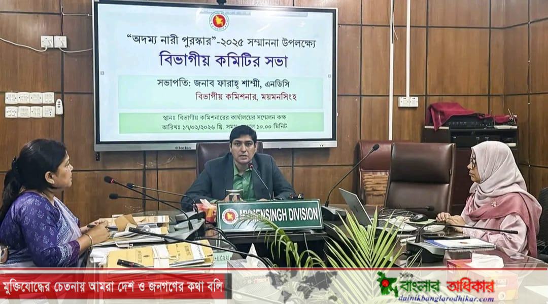 আগামী ০৮ মার্চ ২০২৬ তারিখে আন্তর্জাতিক নারী দিবসে নারীদের পাঁচটি বিশেষ ক্যাটাগরিতে ময়মনসিংহ বিভাগের সফল নারীদের পুরস্কার প্রদান করা হবে। ক্যাটাগরিগুলো হলো: অর্থনৈতিকভাবে সাফল্য অর্জনকারী নারী, শিক্ষা ও চাকুরীর ক্ষেত্রে সাফল্য অর্জনকারী নারী, সফল জননী নারী, নির্যাতনের দুঃস্বপ্ন মুছে জীবনসংগ্রামে জয়ী নারী এবং সমাজ উন্নয়নে অসামান্য অবদান রেখেছেন যে নারী। ময়মনসিংহ বিভাগে প্রতিটি ক্ষেত্রে অসামান্য অবদান রাখা দুইজন করে নারীকে মনোনয়ন দেওয়া হয়েছে, যা পরবর্তী সভায় চূড়ান্তভাবে একজন করে বাছাই করে ঢাকায় পাঠানো হবে। এক্ষেত্রে প্রত্যেকটি নারীর নির্দিষ্ট ক্ষেত্রে অবদান ও সংগ্রামের ভিডিও চিত্র প্রদর্শন করা হয় এবং তুলনামূলক অধিকতর যোগ্য নারীকে সর্বসম্মতিক্রমে বাছাইয়ের সিদ্ধান্ত গৃহীত হয়। সারাদেশে বাছাইকৃত নারীদের মধ্যে থেকে জাতীয় পর্যায়ে আগামী ০৮ মার্চ আন্তর্জাতিক নারী দিবসে পুরস্কার ও সম্মাননা প্রদান করা হবে।