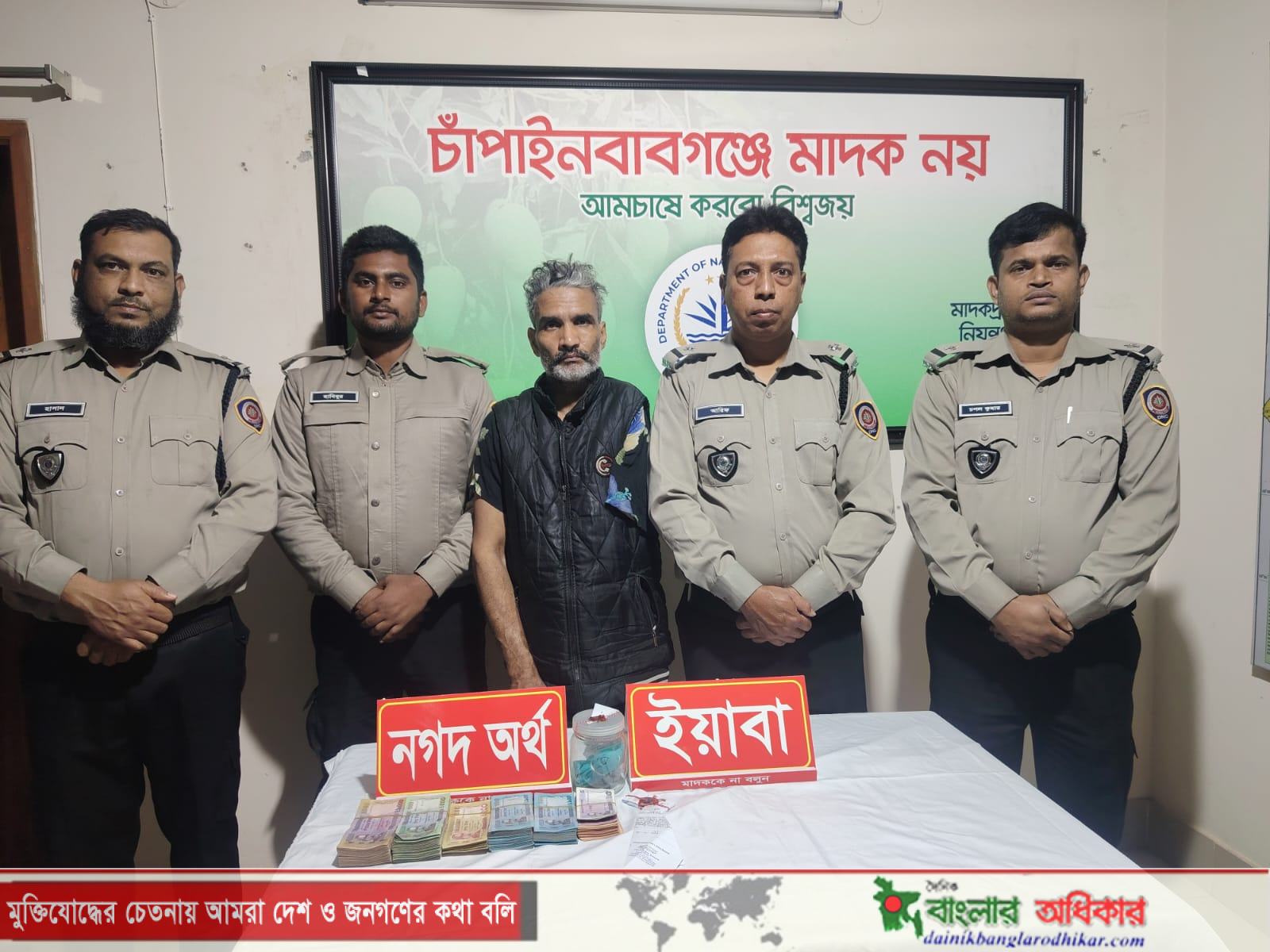 চাঁপাইনবাবগঞ্জে ডিএনসির অভিযানে বিপুল পরিমাণ ইয়াবা ও নগদ অর্থসহ আটক ০১