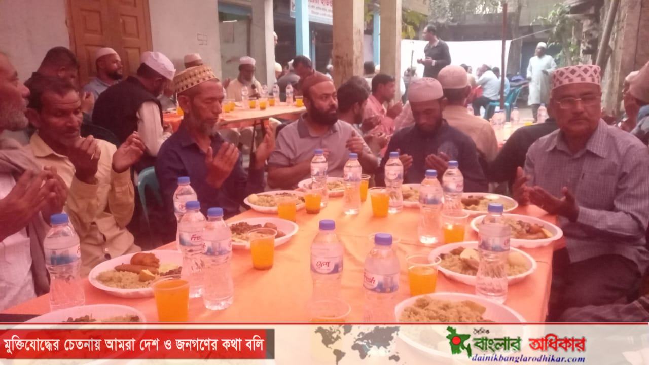 ইফতার মাহফিলে সকলের মঙ্গল কামনায় মোনাজাত করেন ক্বারী আব্দুল মতিন।