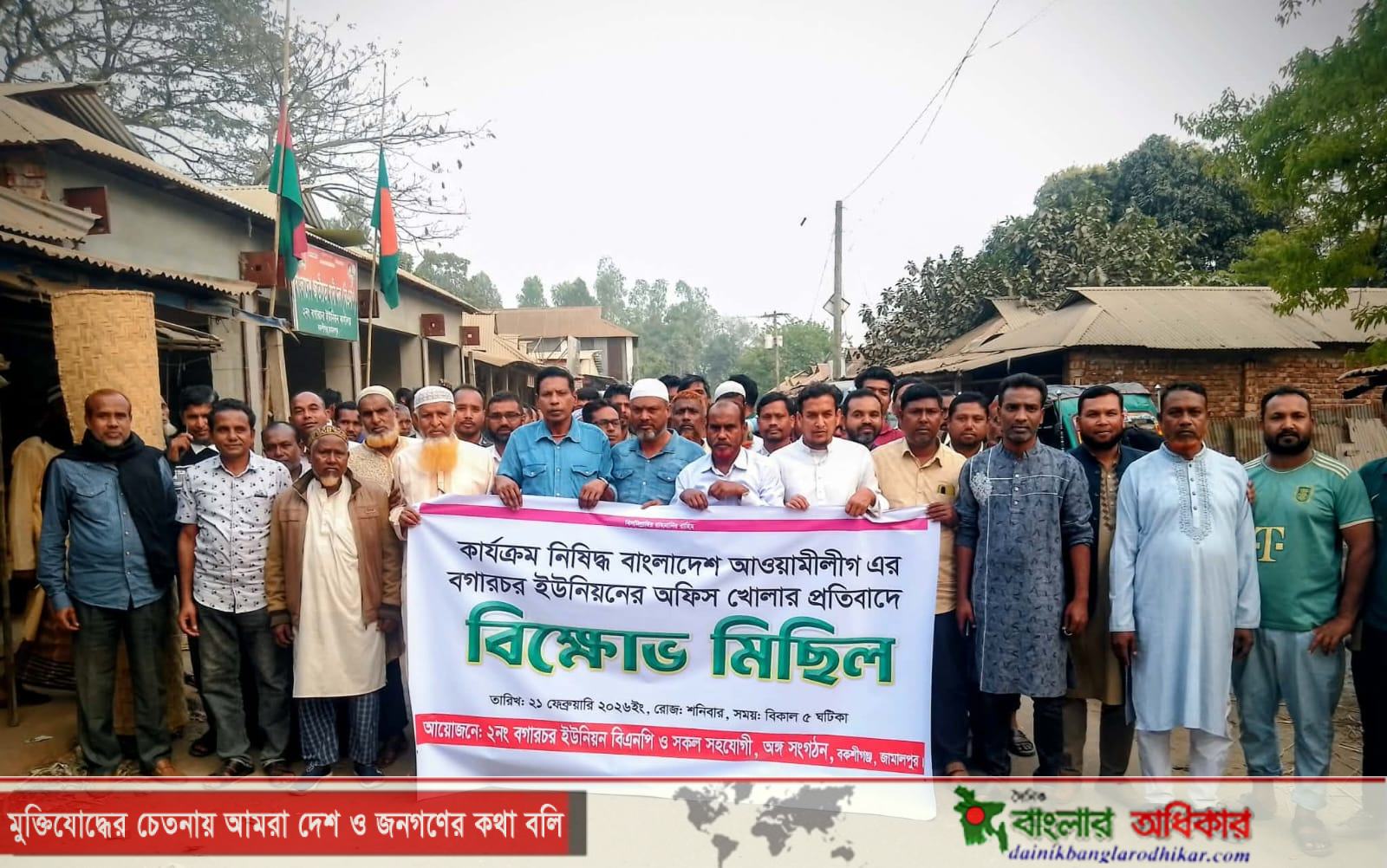 বকশীগঞ্জে কার্যক্রম নিষিদ্ধ আওয়ামী লীগ কার্যালয় খোলার প্রতিবাদে বিক্ষোভ মিছিল অনুষ্ঠিত