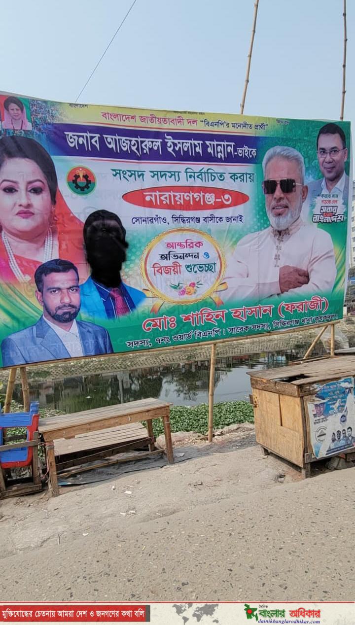 নারায়ণগঞ্জ-৩ আসন (সোনারগাঁও–সিদ্ধিরগঞ্জ) থেকে নবনির্বাচিত সংসদ সদস্য আজহারুল ইসলাম মান্নাকে শুভেচ্ছা ও অভিনন্দন জানিয়ে টানানো একটি ব্যানার বিকৃত করার অভিযোগ উঠেছে দুর্বৃত্তদের বিরুদ্ধে।