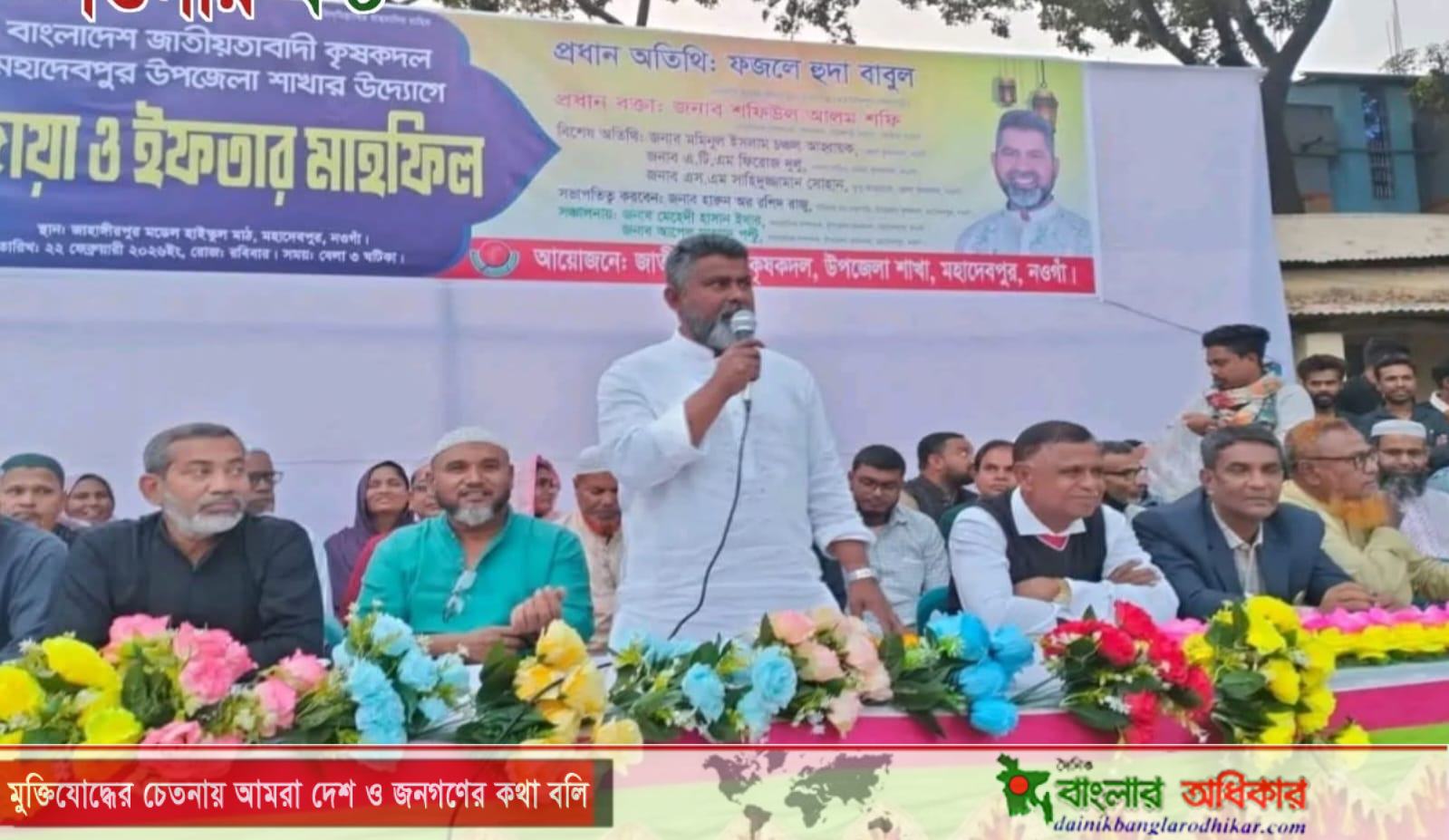 নওগাঁর মহাদেবপুর উপজেলা কৃষকদলের উদ্যোগে পবিত্র মাহে রমজান উপলক্ষে দোয়া ও ইফতার মাহফিল অনুষ্ঠান অনুষ্ঠিত হয়েছে।