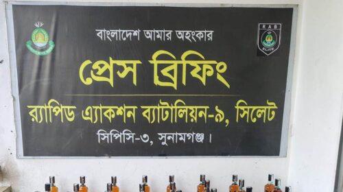 র্যাপিড অ্যাকশন ব্যাটালিয়ন (র্যাব)-৯ এর অভিযানে সুনামগঞ্জের বিশ্বম্ভরপুর উপজেলায় ৪৭ বোতল বিদেশি মদ উদ্ধার করা হয়েছে।