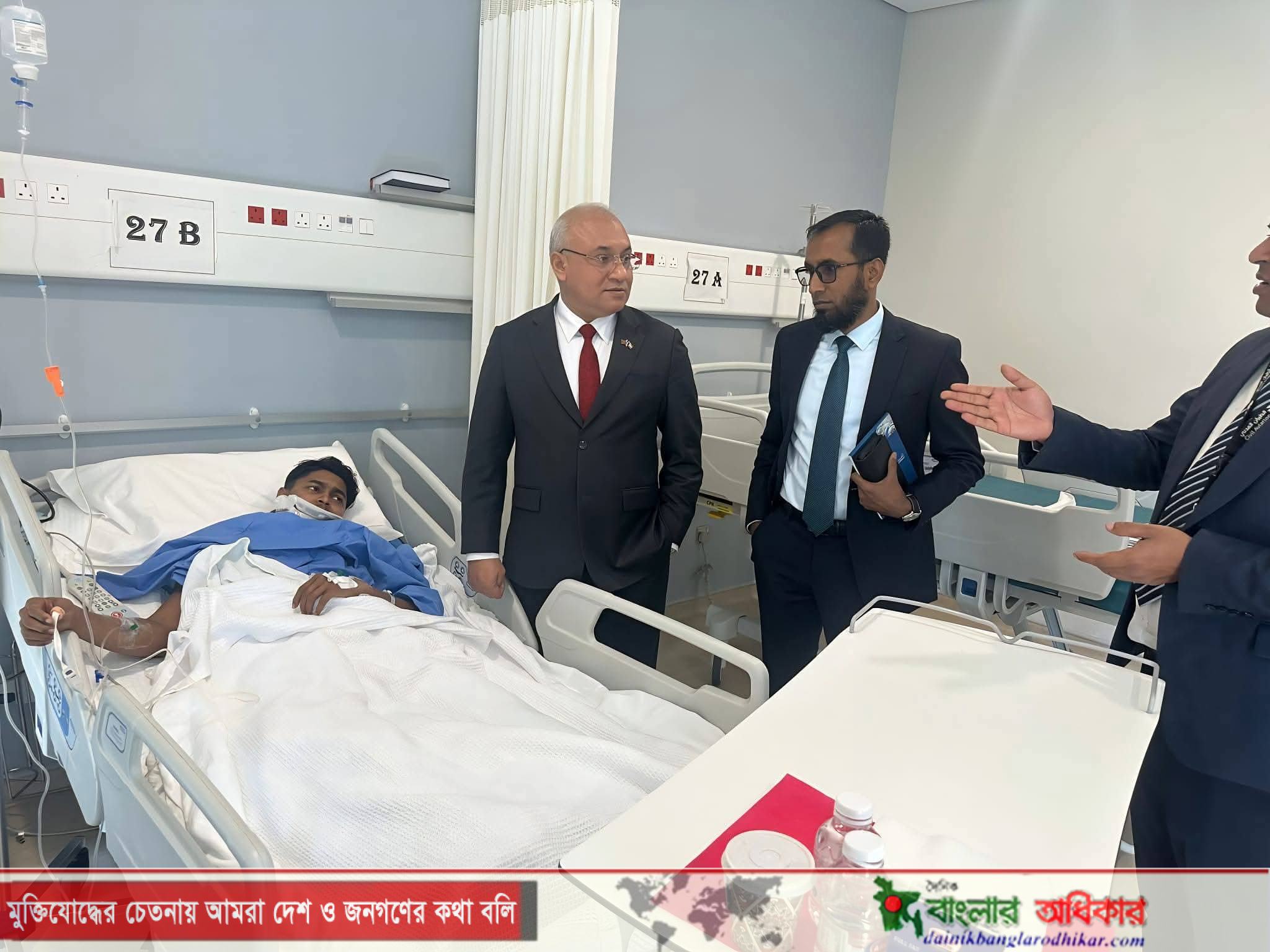 কুয়েতে নিযুক্ত বাংলাদেশের রাষ্ট্রদূত মেজর জেনারেল সৈয়দ তারেক হোসেন আহত প্রবাসীদের চিকিৎসা ও সার্বিক অবস্থার খোঁজখবর নেন। বাংলাদেশ দূতাবাস জানিয়েছে, শনিবার (২৮ ফেব্রুয়ারি) সন্ধ্যা ৬টায় বিমানবন্দরে হামলা সংঘটিত হয়।