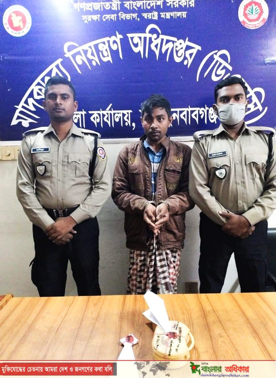 মাদকবিরোধী অভিযানের অংশ হিসেবে চাঁপাইনবাবগঞ্জ মাদকদ্রব্য নিয়ন্ত্রণ অধিদপ্তর জেলা অফিসের একটি টিম অভিযান চালিয়ে ৫.৩০ গ্রাম হেরোইনসহ এক ব্যক্তিকে আটক করেছে। রবিবার (০১ মার্চ) সকাল ০৮:০০ ঘটিকায় চাঁপাইনবাবগঞ্জ জেলার ভোলাহাট থানাধীন বটতলা (আলীর মোড়) গ্রামস্থ এলাকায় এ অভিযান পরিচালিত হয়।