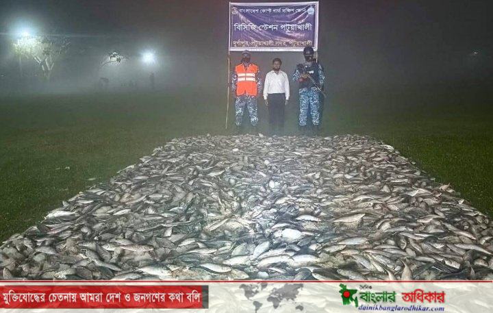 পটুয়াখালী কোস্টগার্ড ও মৎস্য অধিদপ্তরের যৌথ অভিযানে জাটকা জব্দ