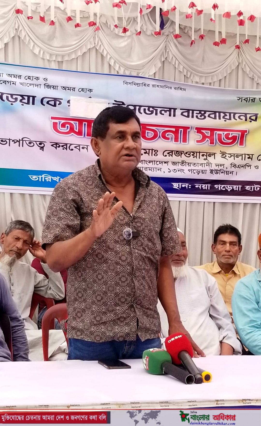 গড়েয়া ইউনিয়ন বিএনপির সভাপতি ও সাবেক চেয়ারম্যান রেজওয়ানুল ইসলাম শাহ রেদোর সভাপতিত্বে আলোচনা সভায় বক্তব্য রাখেন, গড়েয়া ইউনিয়ন বিএনপি সাধারণ সম্পাদক তাশারফ হোসেন (স্মরণ), গড়েয়া ইউনিয়ন পরিষদের প্যানেল চেয়ারম্যান বেলাল হোসেন রেনু, পার্শ্ববর্তী দিনাজপুরের ২ নং পলাশবাড়ী ইউনিয়নের চেয়ারম্যান মোঃ মোস্তাক আহমেদ মানিক , গড়েয়া ডিগ্রী কলেজের অবসরপ্রাপ্ত অধ্যক্ষ আলহাজ্ব সাইফুর রহমান, বিশিষ্ট সমাজসেবক ইসরাইল আজাদ সরকার বিশিষ্ট ব্যবসায়ী এনামুল  হক সরকার, বিশিষ্ট সমাজ সেবক ইউনুস আলী, আফিজার রহমান দুলাল মাষ্টার, শওকত আলী, উমা সংকর শাহ, রতন চৌধুরী প্রমুখ।