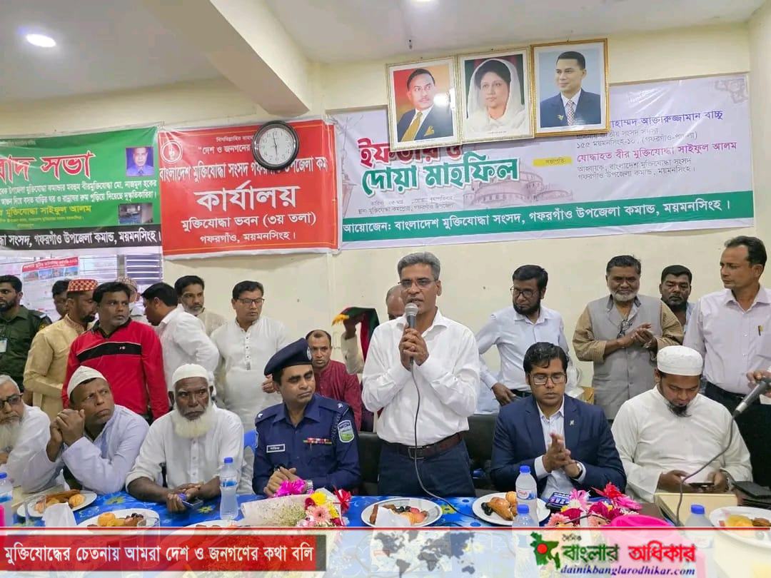 ময়মনসিংহ জেলার গফরগাঁও উপজেলায় বাংলাদেশ মুক্তিযোদ্ধা সংসদ গফরগাঁও উপজেলা কমান্ড কর্তৃক আয়োজিত ইফতার ও দোয়া মাহফিল অনুষ্ঠিত হয়।