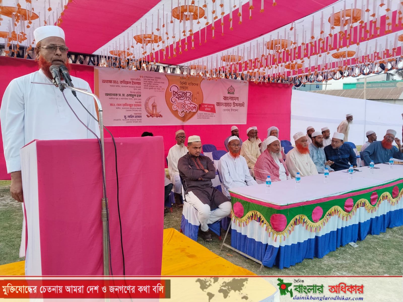খুলনা জেলা জামায়াতে ইসলামীর নায়েবে আমির অধ্যক্ষ মাওলানা কবিরুল ইসলাম বলেছেন, সমাজে সন্ত্রাসী, অস্ত্রধারী, দখলবাজদের কোনো স্থান নেই। একটি শান্তিপূর্ণ ন্যায় ভিত্তিক ও কল্যাণমুখী সমাজ গঠনের জন্য কোরআন ও হাদিসের নির্দেশনা অনুযায়ী প্রতিটি দিন পরিচালিত হওয়া প্রয়োজন। তিনি বলেন, সমাজ ও রাষ্ট্র থেকে দুর্নীতি, অন্যায় এবং অবিচার দূর করতে সবাইকে ঐক্যবদ্ধ হয়ে কাজ করতে হবে। কোরআন সুন্নাহর আদর্শ অনুসরণ করেই একটি পরিচ্ছন্ন ও দুর্নীতিমুক্ত সমাজ গড়ে তোলা সম্ভব। এ লক্ষ্য বাস্তবায়নে জামায়াতে ইসলামী সব সময় জনগণের পাশে থেকে কাজ করে যাচ্ছে এবং ভবিষ্যতেও করে যাবে। তিনি বলেন, দেশ ও জাতির কল্যাণে নৈতিকতা, মানসিকতা এবং ন্যায়ের চর্চা অত্যন্ত জরন্ত্রী। সমাজে যারা সন্ত্রাস ও দখলবাজী এবং দুর্নীতির মাধ্যমে অস্থিতিশীলতা সৃষ্টি করে তাদের বিরুদ্ধে সকলকে সচেতন থাকতে হবে। তিনি আজ ৮ মার্চ বিকেল ৫টার দিকে ইখড়ি কাটেঙ্গা ফজলুল হক মডেল সরকারি মাধ্যমিক বিদ্যালয় মাঠে উপজেলা জামায়াতে ইসলামী আয়োজিত আলোচনা সভা ও ইফতার মাহফিলে প্রধান অতিথির বক্তৃতায় এ কথা বলেন। উপজেলা জামায়াতে ইসলামীর আমির মাওলানা সেখ হাফিজুর রহমানের সভাপতিত্বে আয়োজিত আলোচনা সভা ও ইফতার মাহফিলে বিশেষ অতিথির বক্তৃতা করেন, উপজেলা বিএনপির আহবায়ক চৌধুরী কাওছার আলী, উপজেলা বিএনপির সাবেক আহবায়ক চৌধুরী ফখরুল ইসলাম বুলু জেলা জামায়াতে ইসলামীর কর্ম পরিষদ সূরা সদস্য অধ্যাপক স. ম এনামুল হক, ইসলামী শাসনতন্ত্র আন্দোলনের সভাপতি মাওলানা আক্তারুজ্জামান, উপজেলা বিএনপির সম্মেলন প্রস্তুত কমিটির সদস্য যথাক্রমে মোঃ ইকরাম হোসেন জমাদ্দার ও শরীফ নাঈমুল হক, বিএনপি নেতা মোঃ বিল্লাল হোসেন, মোঃ ইবাদুল হক সিকদার, উপজেলা ছাত্রদলের আহবায়ক মোঃ নাব্বির আহমেদ টগর ও এনসিপি নেতা এম এ কাদের। উপজেলা জামায়াতে ইসলামীর সেক্রেটারি মু. নাহিদ হাসানের পরিচালনায় অন্যান্যের মধ্যে বক্তৃতা করেন উপজেলা জামায়াতে ইসলামীর নায়েবে আমির মাওলানা আব্দুস সালাম জাহেদী, হাফেজ মালনানা গোলাম রব্বানী, মাওলানা এম এ হাফিজ, মাস্টার আক্তার ফারুক, মোঃ আব্দুস সামাদ লিটন, মাওলানা ইবাদুল ইসলাম, মাওলানা আব্দুর রকিব, মাওলানা মুজাহিদুল ইসলাম, মাস্টার আহসান হাবিব লুনা, শিবির সভাপতি মোঃ মিল্লাত হোনেন। সভায় এছাড়া বিভিন্ন পর্যায়ের নেতাকর্মীরা উপস্থিত ছিলেন। পরে ইফতার মাহফিল অনুষ্ঠিত হয়।