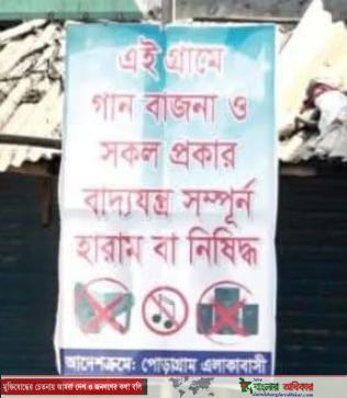 সংবাদে আরও দেখা যায়, পোড়াগ্রাম এলাকার কিছু বাসিন্দার উদ্যোগে গান বাজনা ও সব ধরনের বাদ্যযন্ত্রের ওপর নিষেধাজ্ঞা জারি করা হয়েছে। গ্রামের মোড়ে মোড়ে ফেস্টুন টাঙানো হয়েছে।