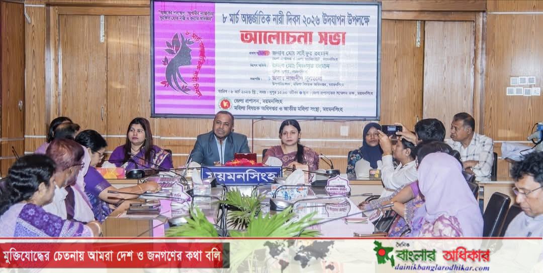 “আজকের পদক্ষেপ, আগামীর ন্যায়বিচার সুরক্ষিত হোক নারী ও কন্যার অধিকার” এই প্রতিপাদ্যকে সামনে রেখে ময়মনসিংহে আন্তর্জাতিক নারী দিবস-২০২৬ উদযাপন উপলক্ষ্যে র্যালি ও আলোচনা সভা অনুষ্ঠিত হয়েছে।