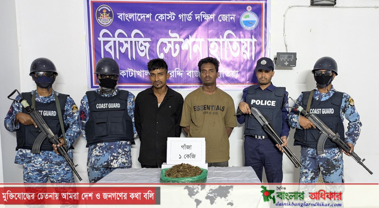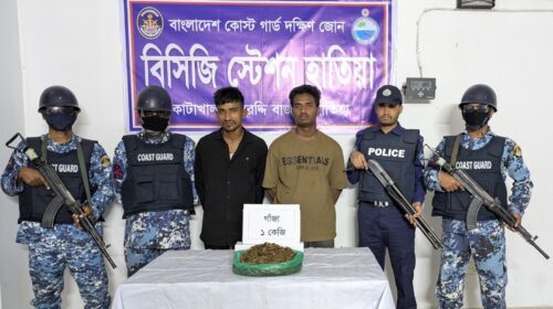 নোয়াখালীর হাতিয়া উপজেলার বুড়ির চর ইউনিয়নের রাজারহাট বাজার সংলগ্ন এলাকায় রবিবার (৮মার্চ) ভোরে পুলিশ ও কোস্টগার্ড সদস্যরা যৌথ অভিযান পরিচালনা করে প্রায় ৪০ হাজার টাকা মূল্যের ১ কেজি গাঁজা সহ ২ জন মাদক কারবারিকে আটক করেছে। আটককৃত মাদক কারবারিরা হচ্ছে মোঃ ফরহাদ ( ২৩) ও মোঃ আজিজ (২০)। রবিবার বিকেলে গনমাধ্যমের কাছে বিষয়টি নিশ্চিত করেছেন কোস্টগার্ডের দক্ষিণ জোনের মিডিয়া কর্মকর্তা লেফটেন্যান্ট মোঃ আবুল কাশেম। তিনি আরো বলেন,জব্দকৃত গাঁজা এবং আটককৃত মাদক কারবারিদের পরবর্তী আইনানুগ ব্যবস্থা গ্রহণের জন্য ভোলা সদর থানায় হস্তান্তর করা হয়। আটককৃত মাদক কারবারিদের বাড়ি হাতিয়া উপজেলার বুড়ির চর ইউনিয়নের রেহানিয়া গ্রামে।