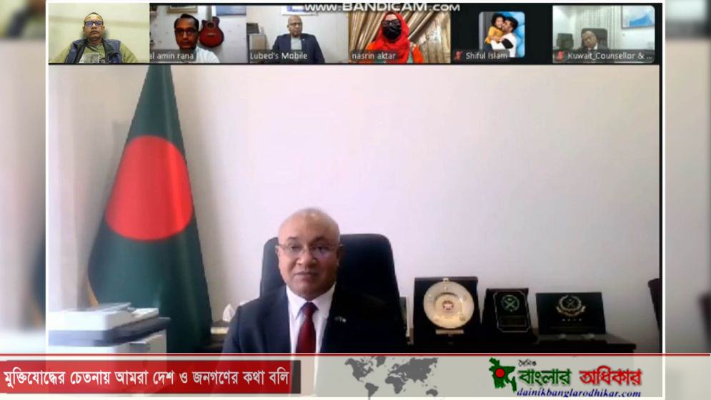 মধ্যপ্রাচ্যের চলমান উত্তপ্ত পরিস্থিতির প্রেক্ষাপটে কুয়েত প্রবাসী বাংলাদেশি মূলধারার গণমাধ্যমকর্মী ও সোশ্যাল মিডিয়া অ্যাক্টিভিস্টদের নিয়ে একটি বিশেষ ভার্চুয়াল আলোচনা সভার আয়োজন করেছে কুয়েতস্থ বাংলাদেশ দূতাবাস।