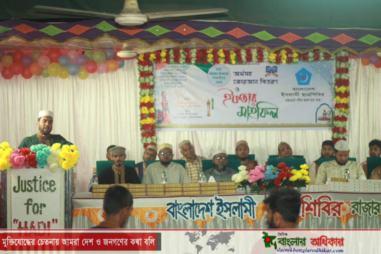 বাংলাদেশ ইসলামী ছাত্রশিবির রাজারহাট পশ্চিম শাখার উদ্যোগে অর্থসহ কুরআন বিতরণ ও ইফতার মাহফিল অনুষ্ঠিত হয়েছে।