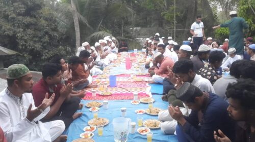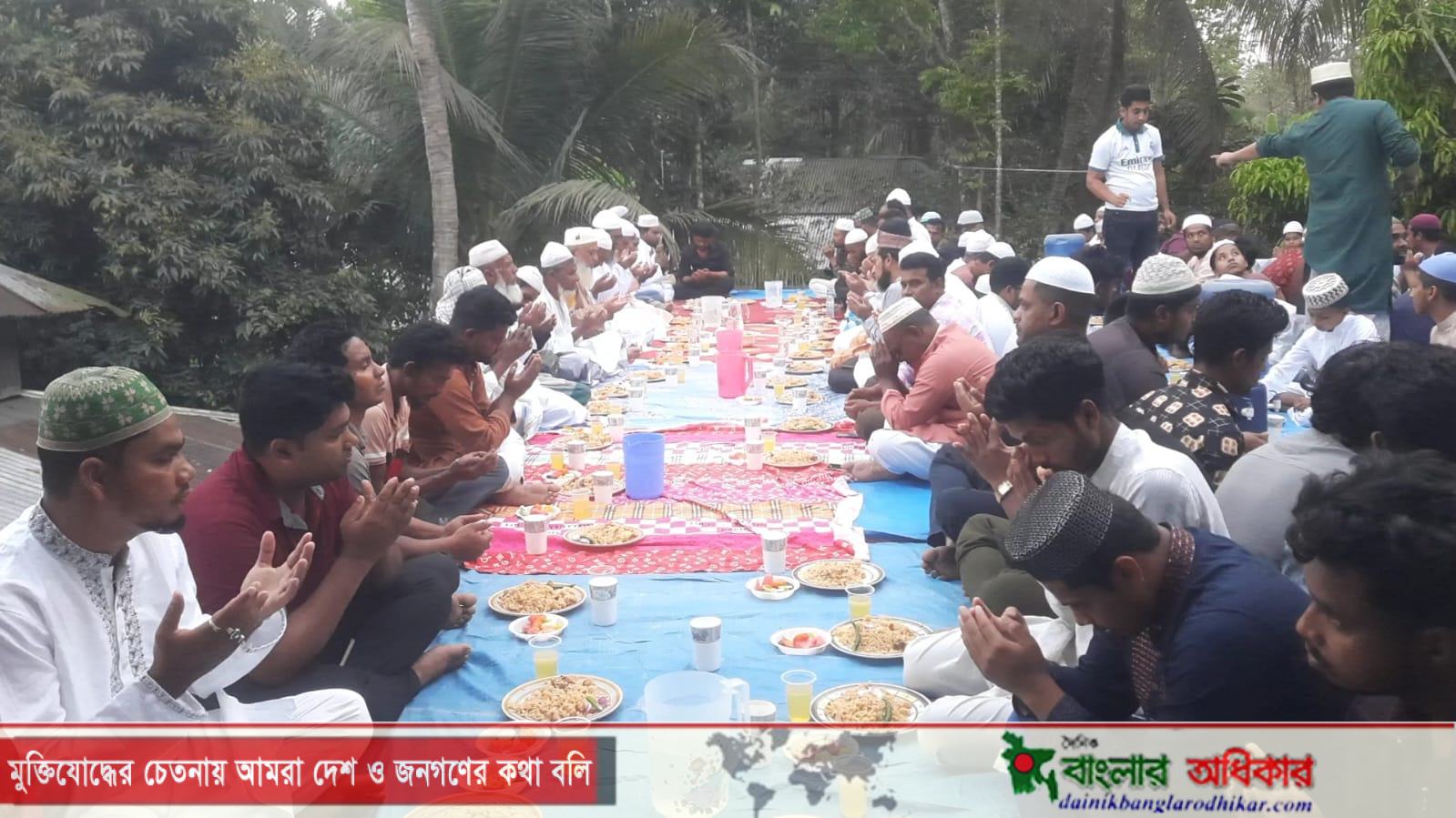 মাহফিলের শেষে উপস্থিত সকলের মাঝে ইফতার বিতরণ করা হয় এবং দেশের শান্তি ও সমৃদ্ধি কামনায় বিশেষ মোনাজাত করা হয়।