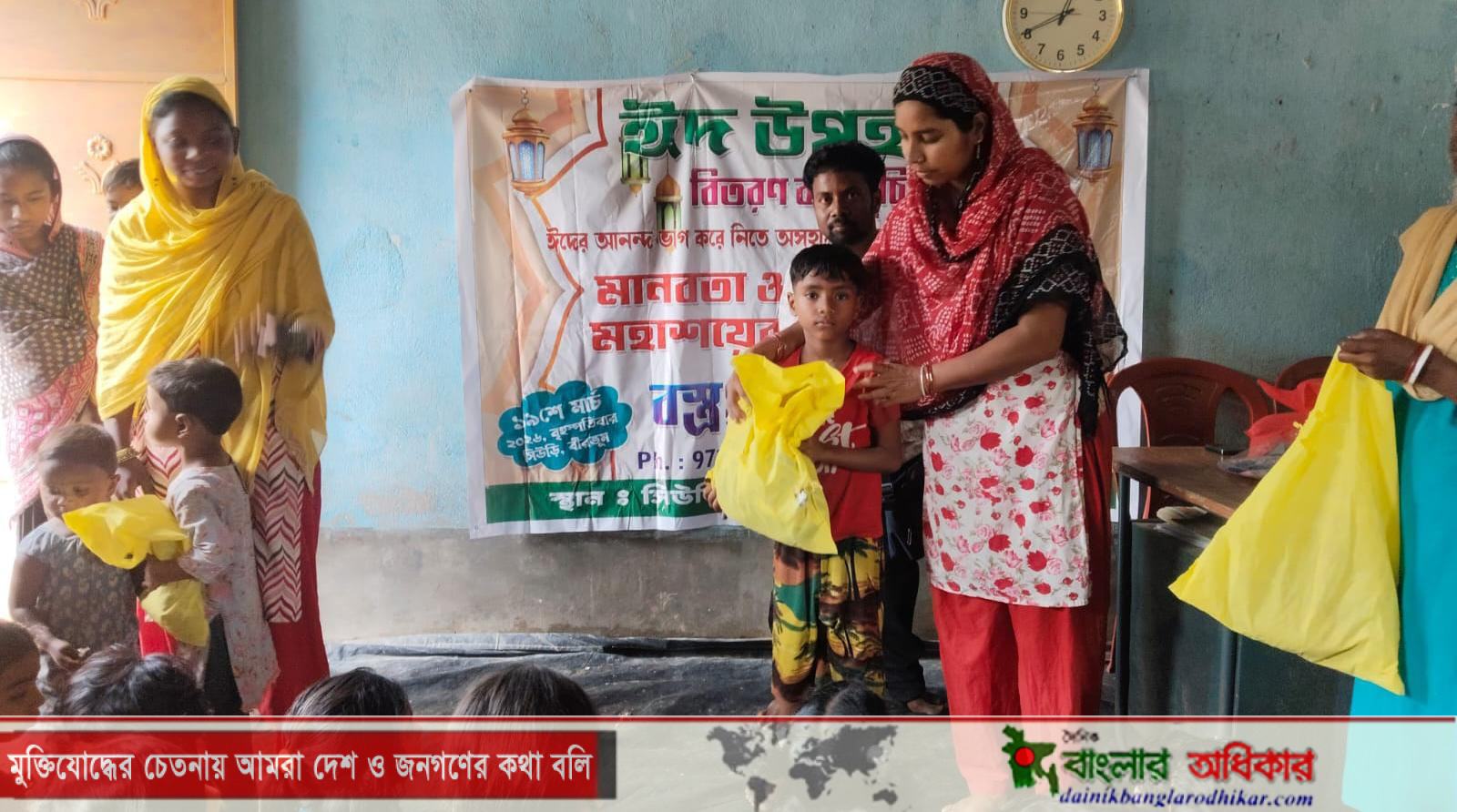 আসন্ন ঈদুল ফিতর উপলক্ষে অসহায় ও সুবিধাবঞ্চিত শিশুদের মুখে হাসি ফোটাতে সমাজকল্যাণমূলক সংস্থা ‘মানবতা’-র উদ্যোগে এক বস্ত্র বিতরণ কর্মসূচি অনুষ্ঠিত হলো বীরভূম জেলার সিউড়ির হাটজন বাজার এলাকায়।বৃহস্পতিবার আয়োজিত এই কর্মসূচিতে প্রায় ১০০ জন অসহায়, অনাথ ও দুস্থ পরিবারের শিশুর হাতে নতুন পোশাক তুলে দেওয়া হয়। এই উদ্যোগটি বাস্তবায়িত হয় শারীরিক প্রতিবন্ধী সমাজসেবী জগন্নাথ মাহারা পরিচালিত ‘বিদ্যাসাগর মহাশয়ের পাঠশালা’-র সাথে যৌথ ভাবে বা সহযোগিতায়। নতুন পোশাকের পাশাপাশি শিশুদের জন্য ক্যাডবেরি ও টিফিনের ব্যবস্থাও করা হয়,যা তাদের আনন্দকে আরও বাড়িয়ে তোলে। অনুষ্ঠানে মানবতার পক্ষ থেকে উপস্থিত ছিলেন সদস্য ডাঃ সিদ্দিক। এছাড়াও উপস্থিত ছিলেন শিক্ষক জগন্নাথ মাহারা, পাঠশালার শিক্ষিকা টুম্পা দে, আবিরা খাতুন, সোনালী খাতুনসহ অন্যান্যরা। সংস্থার সাধারণ সম্পাদক জুলফিকার আলী পিয়াদা জানান, বর্তমান সময়ে যখন সমাজে ধর্ম, জাত ও ভাষার বিভাজন তৈরির অপচেষ্টা দেখা যাচ্ছে, তখন জগন্নাথ মাহারার মতো একজন শারীরিক প্রতিবন্ধী ব্যক্তি, যিনি নিজে অমুসলিম হয়েও মুসলিম পরিবারের শিশুদের জন্য ঈদের পোশাক বিতরণের উদ্যোগ নিয়েছেন—তা নিঃসন্দেহে এক অনন্য মানবিক দৃষ্টান্ত। তিনি আরও বলেন, ভবিষ্যতে মানবতা সংস্থা বীরভূমে আরও বৃহত্তর সামাজিক কার্যক্রম গ্রহণের আশাবাদী। এদিকে, বীরভূম জেলার অসহায় শিশুদের পাশে দাঁড়ানোর জন্য শিক্ষক জগন্নাথ মাহারা ‘মানবতা’ সংস্থা এবং সংস্থার সাধারণ সম্পাদক জুলফিকার আলী পিয়াদাকে আন্তরিক ধন্যবাদ জ্ঞাপন করেন। তিনি জানান, এ ধরনের মানবিক উদ্যোগ সমাজে ইতিবাচক বার্তা ছড়ায় এবং ভবিষ্যতে আরও অনেককে অসহায় মানুষের পাশে দাঁড়াতে উৎসাহিত করবে। শেষে সংস্থার পক্ষ থেকে এই কর্মসূচি সফল করতে যারা সহযোগিতার হাত বাড়িয়ে দিয়েছেন, তাদের সকলের প্রতি আন্তরিক কৃতজ্ঞতা ও ধন্যবাদ জানানো হয়। পাশাপাশি সমাজের আরও সহৃদয় মানুষের এগিয়ে আসার আহ্বান জানানো হয়, যাতে এ ধরনের মানবিক উদ্যোগ আরও বিস্তৃতভাবে বাস্তবায়ন করা সম্ভব হয়।