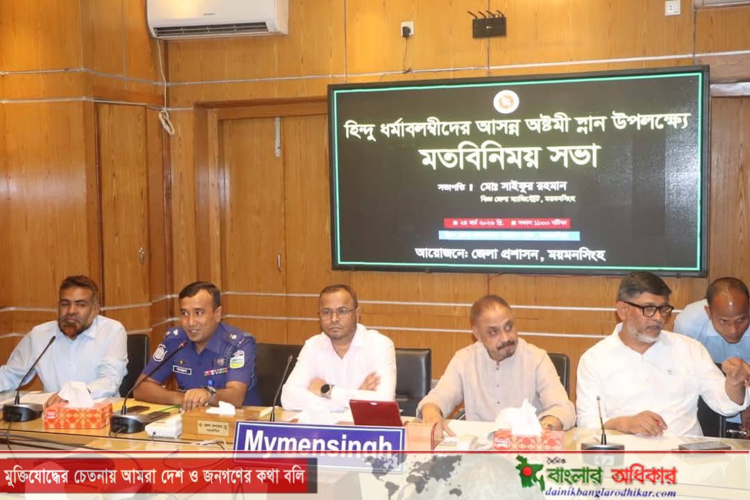 ময়মনসিংহে আসন্ন অষ্টমী স্নান উপলক্ষে জেলা প্রশাসনের মতবিনিময় সভা অনুষ্ঠিত