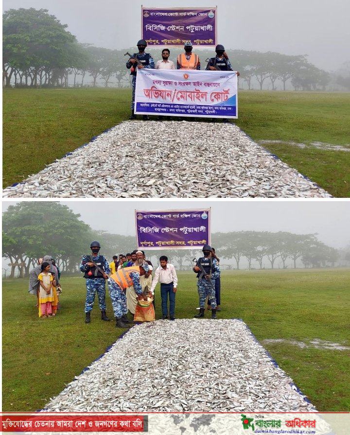পরবর্তীতে জব্দকৃত জাটকা পটুয়াখালী উপজেলা মৎস্য কর্মকর্তার উপস্থিতিতে স্থানীয় এতিমখানা ও গরিব দুঃস্থদের মাঝে বিতরণ করা হয়।