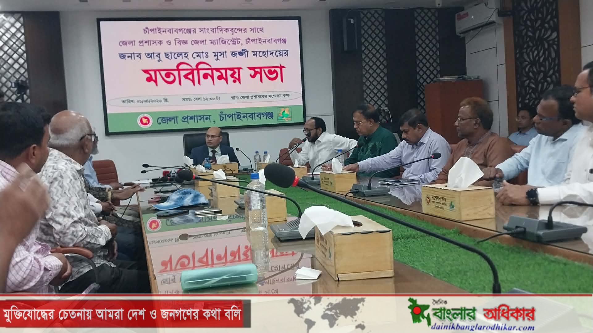 সাংবাদিকদের উদ্দেশ্যে জেলা প্রশাসক আবু ছালেহ মোঃ মুসা জঙ্গী বলেন, “সাংবাদিকরা সমাজের দর্পণ এবং প্রশাসনের অন্যতম সহযোগী। চাঁপাইনবাবগঞ্জকে একটি আদর্শ ও উন্নত জেলা হিসেবে গড়ে তুলতে আপনাদের বস্তুনিষ্ঠ লেখনী অত্যন্ত জরুরি। আমরা স্বচ্ছতা ও জবাবদিহিতার সাথে কাজ করতে চাই এবং এক্ষেত্রে আপনাদের গঠনমূলক সমালোচনা ও সহযোগিতা একান্ত কাম্য।”