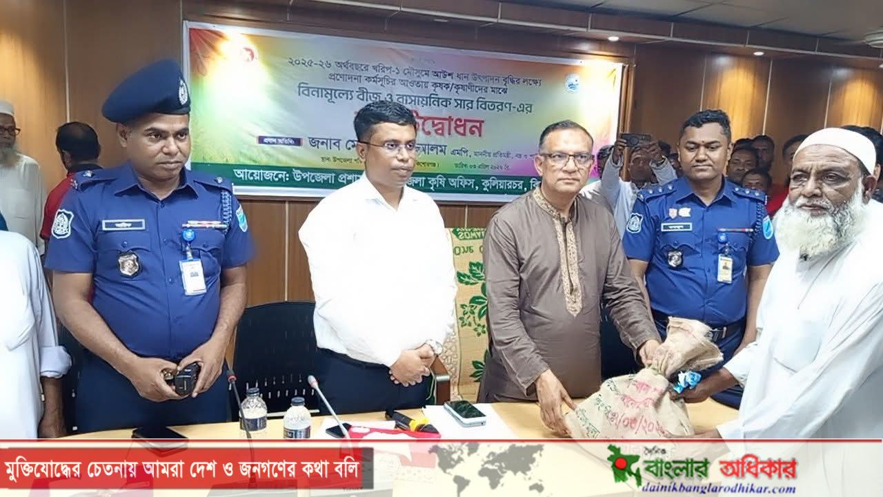 শুক্রবার (৩ এপ্রিল) দুপুরে কিশোরগঞ্জের কুলিয়ারচরে উপজেলা প্রশাসন ও কৃষি সম্প্রসারণ অধিদপ্তরের আয়োজনে কৃষকদের মাঝে বিনামূল্যে বীজ ও সার বিতরণ কার্যক্রমের উদ্বোধনকালে প্রধান অতিথির বক্তব্যে তিনি এ নির্দেশ দেন।