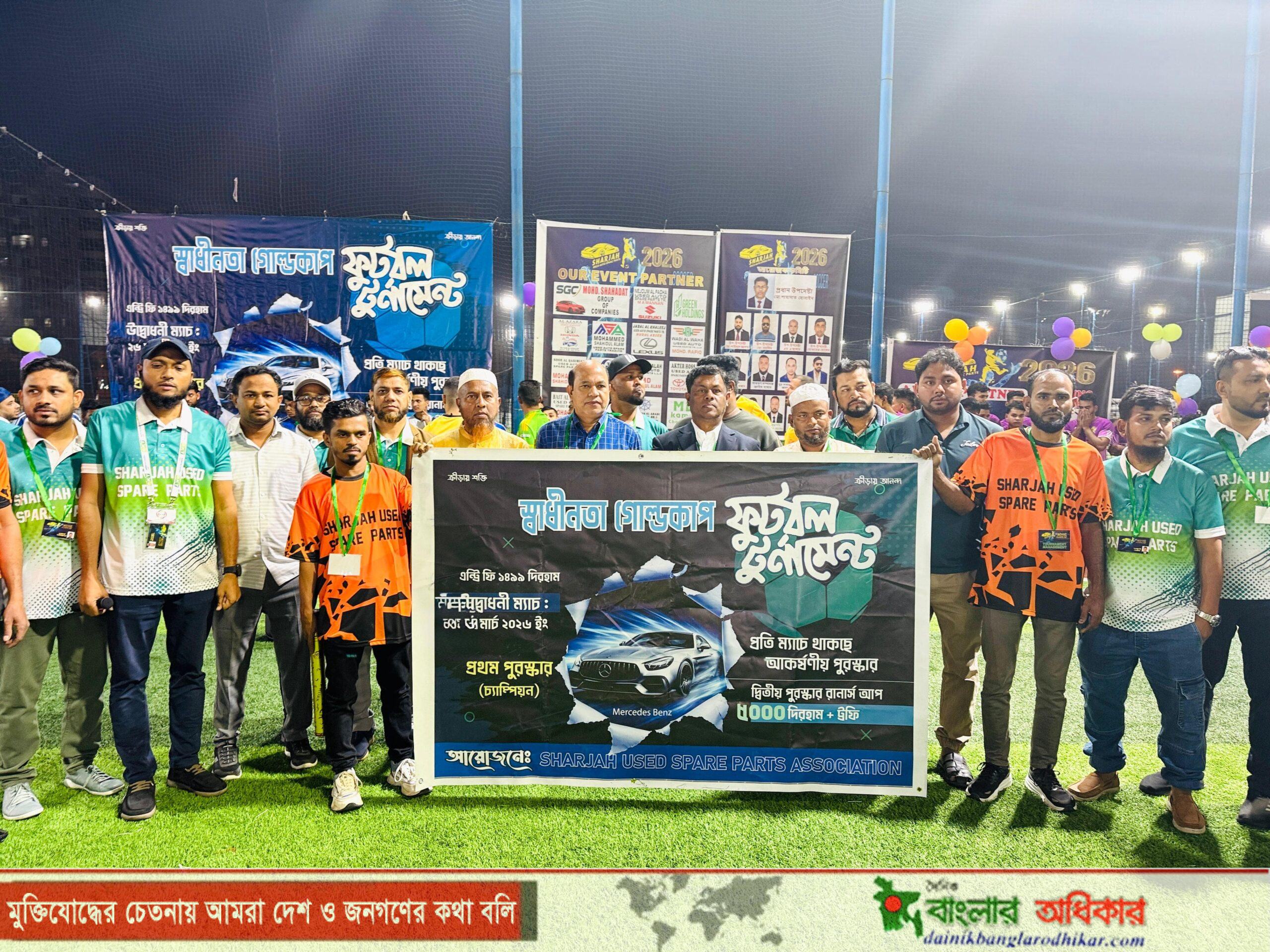 শারজাহর জনপ্রিয় সংগঠন ‘ইউজড স্পেয়ার পার্টস অ্যাসোসিয়েশন’ আয়োজিত এই টুর্নামেন্টটি এবার আলোচনার শীর্ষে রয়েছে এর পুরস্কারের কারণে। টুর্নামেন্টের বিজয়ী দলের জন্য রাখা হয়েছে বিশ্বের অন্যতম বিলাসবহুল ব্র্যান্ড ‘মার্সিডিজ বেঞ্জ’ গাড়ি। এছাড়া রানার-আপ দলের জন্য থাকছে ৫ হাজার দিরহাম নগদ অর্থ। প্রবাসে কোনো ফুটবল টুর্নামেন্টে এমন রাজকীয় পুরস্কারের ঘোষণা খেলোয়াড় ও দর্শকদের মাঝে বাড়তি রোমাঞ্চ যোগ করেছে।